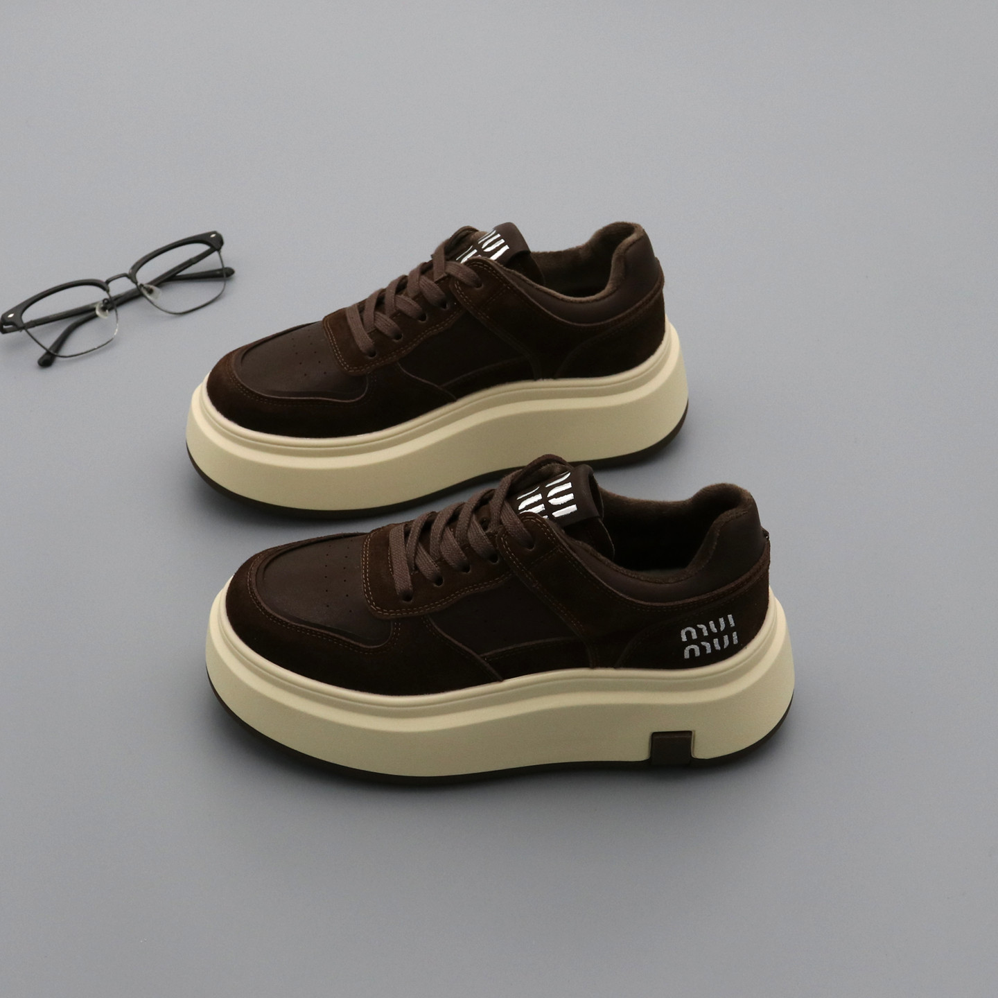 真皮加绒保暖休闲鞋女棉鞋2025冬季圆头系带厚底增高板鞋女松糕鞋