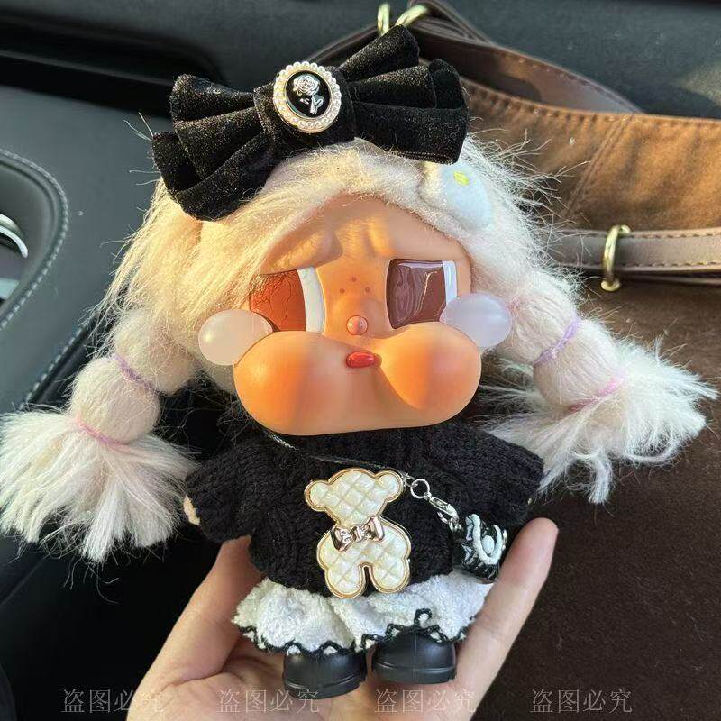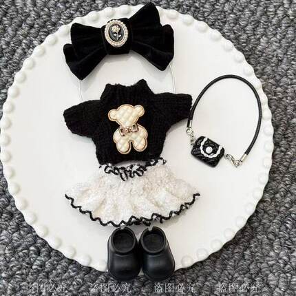 韩版15cm潮玩哭娃娃衣黑色小熊毛绒套装蝴蝶结手工娃娃衣服