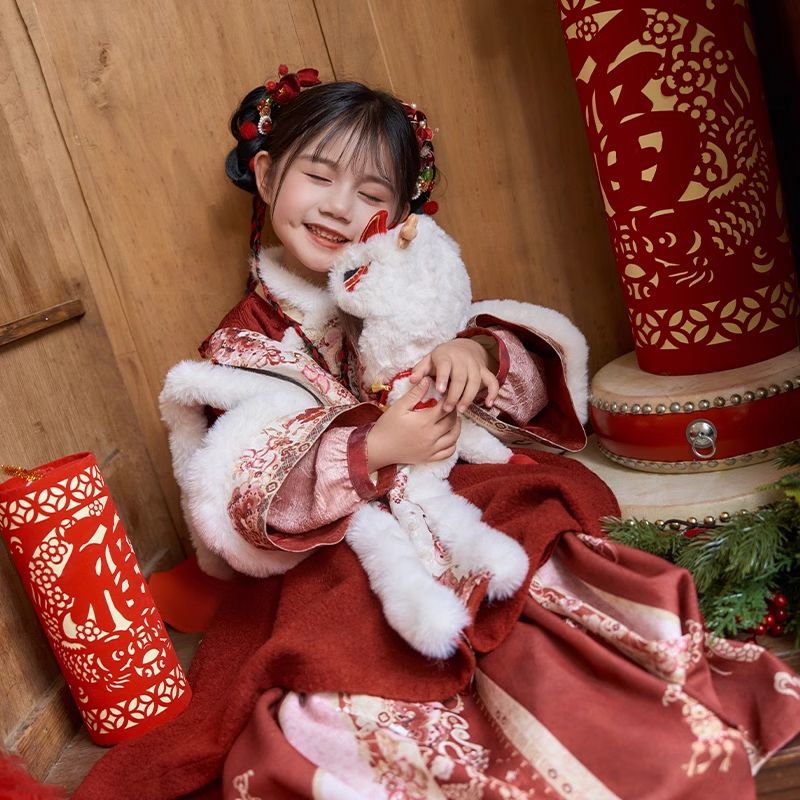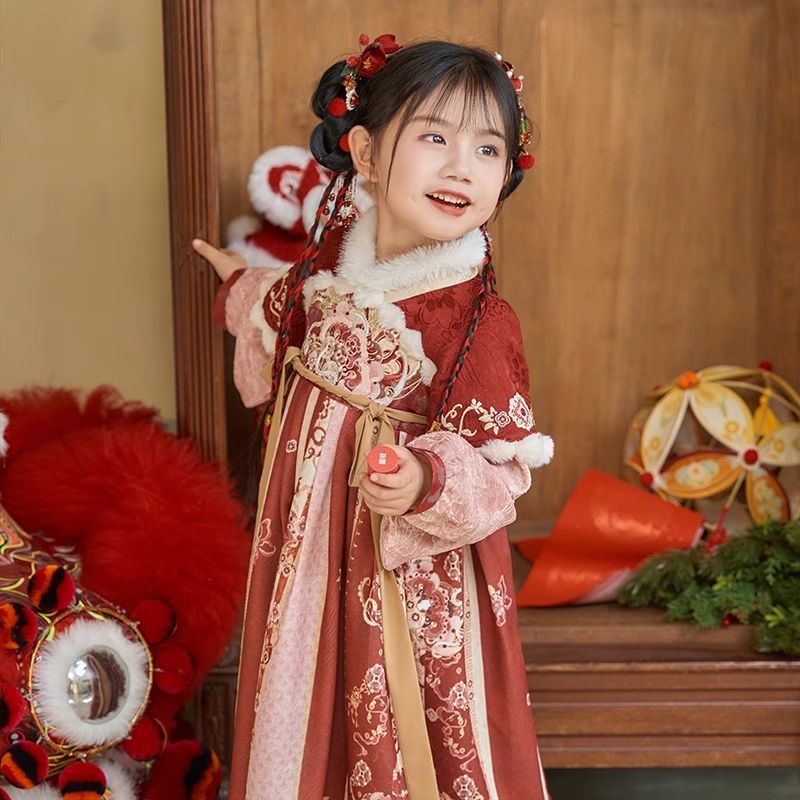 女童汉服冬款儿童古风女宝宝加绒中国风唐装演出过年服古装拜年服