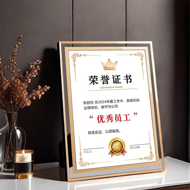 【量大价优】水晶玻璃荣誉证书框