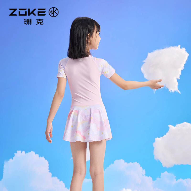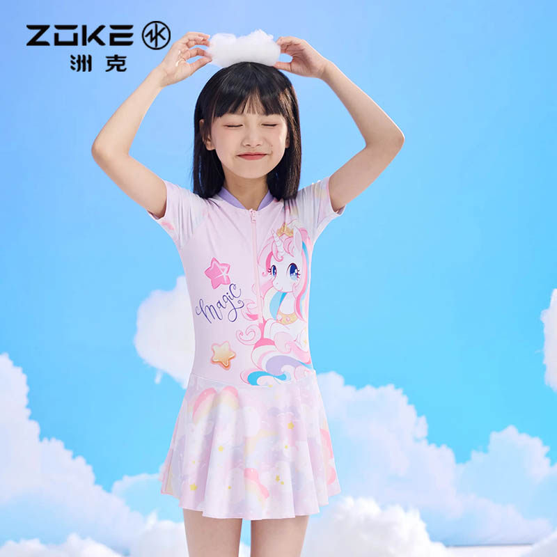 ZOKE洲克新品独角兽女童/中大童常规培训游泳戏水连体裙摆泳衣