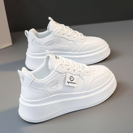 真皮小白鞋女2025新款秋季爆款厚底内增高配裙子百搭运动休闲板鞋