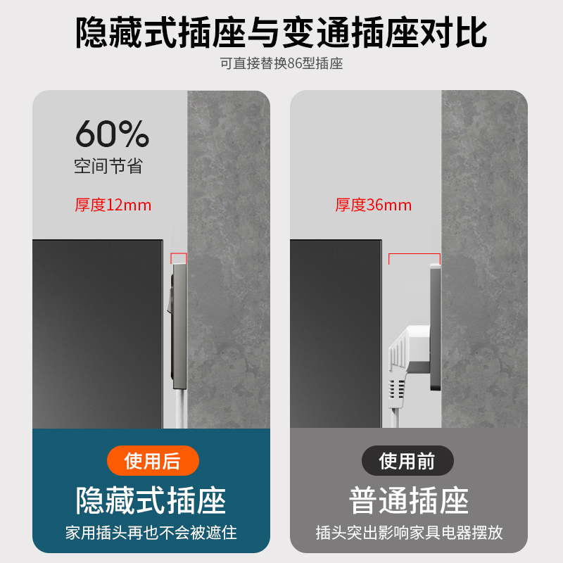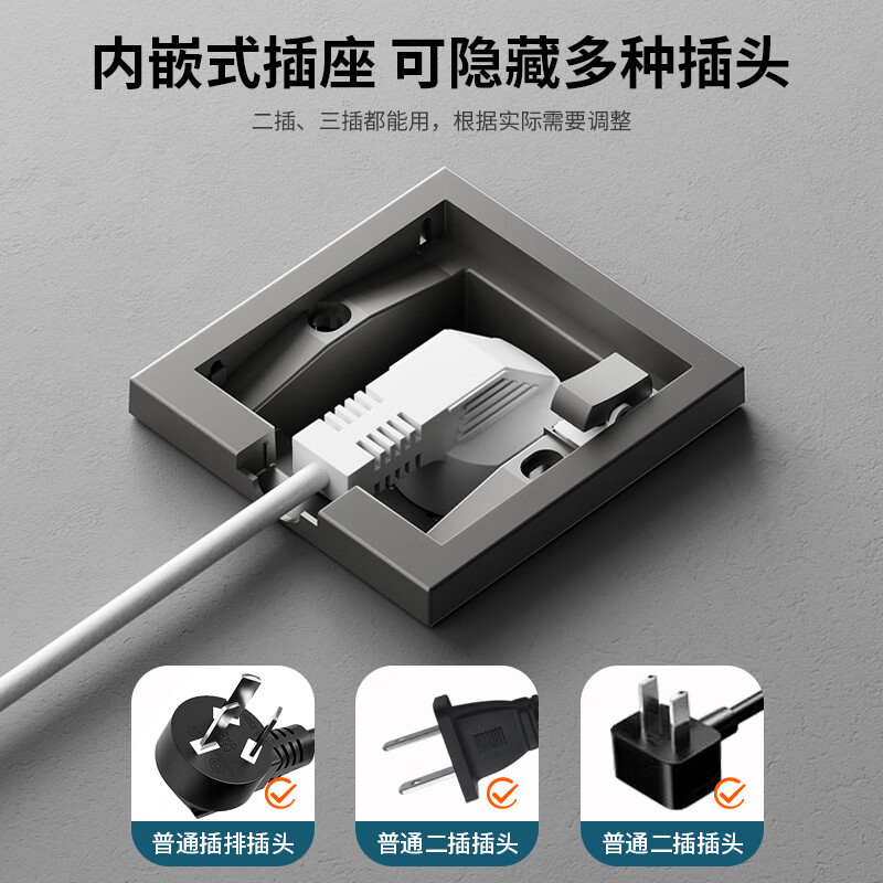 嵌入式隐形插座内凹墙壁隐藏86型内嵌式插座家用面板冰箱16a五孔
