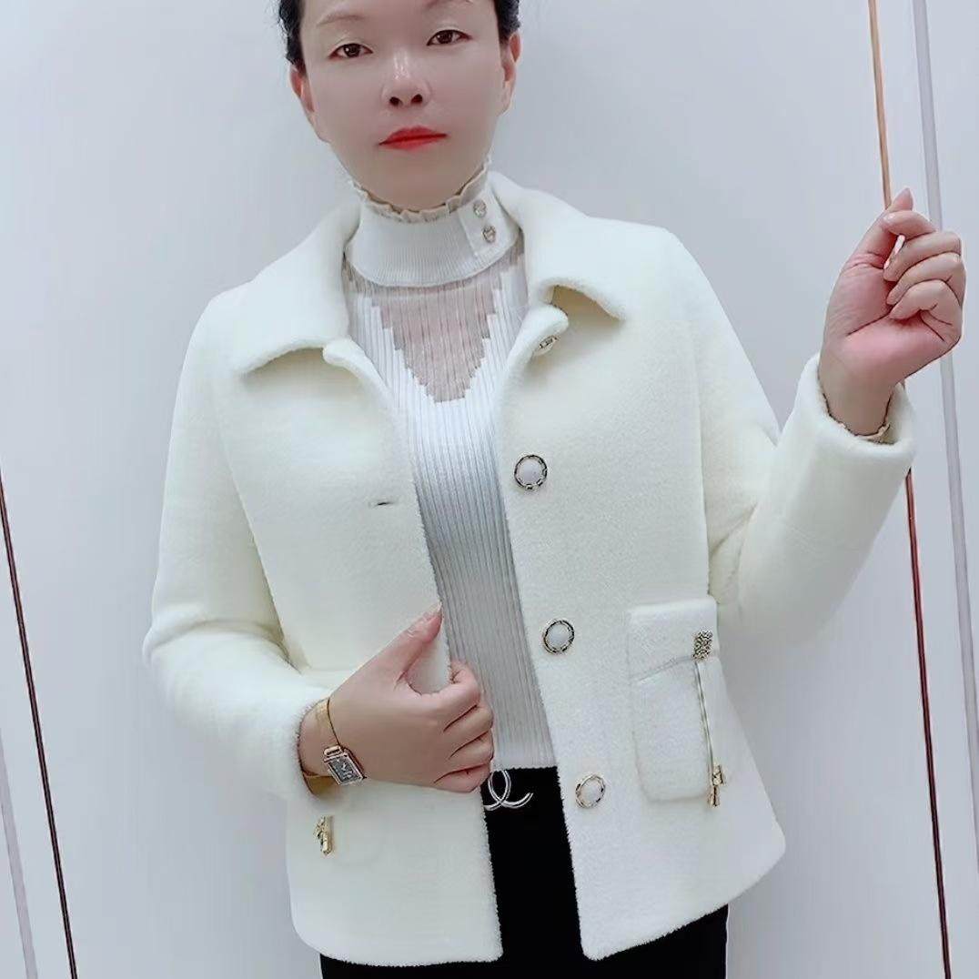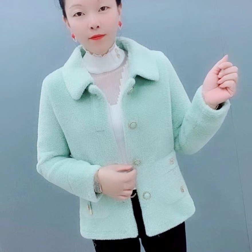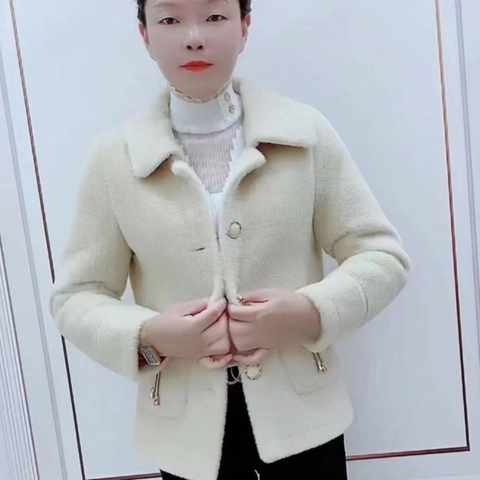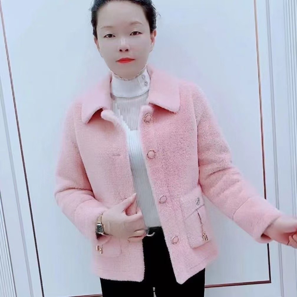 精品仿水貂毛修身短外套女2024秋冬新款皮毛一体超柔软毛呢女外套