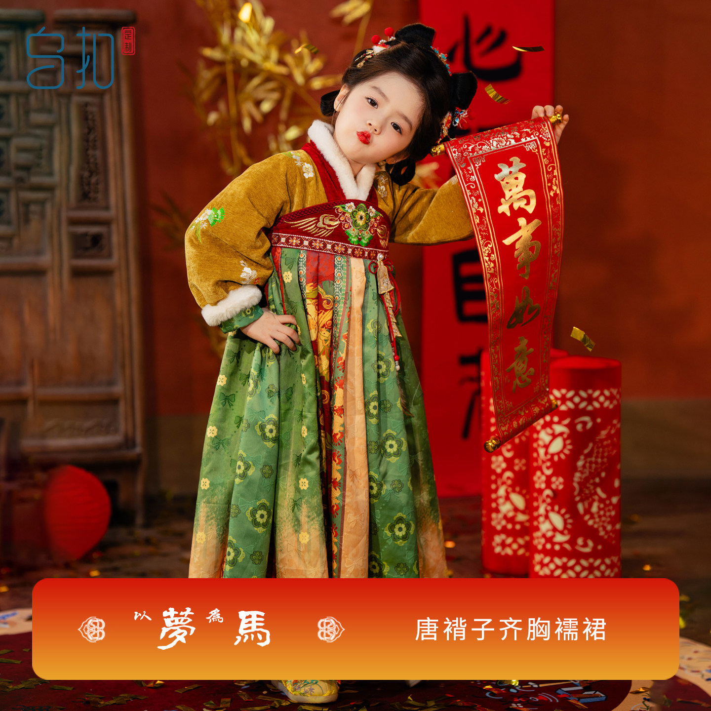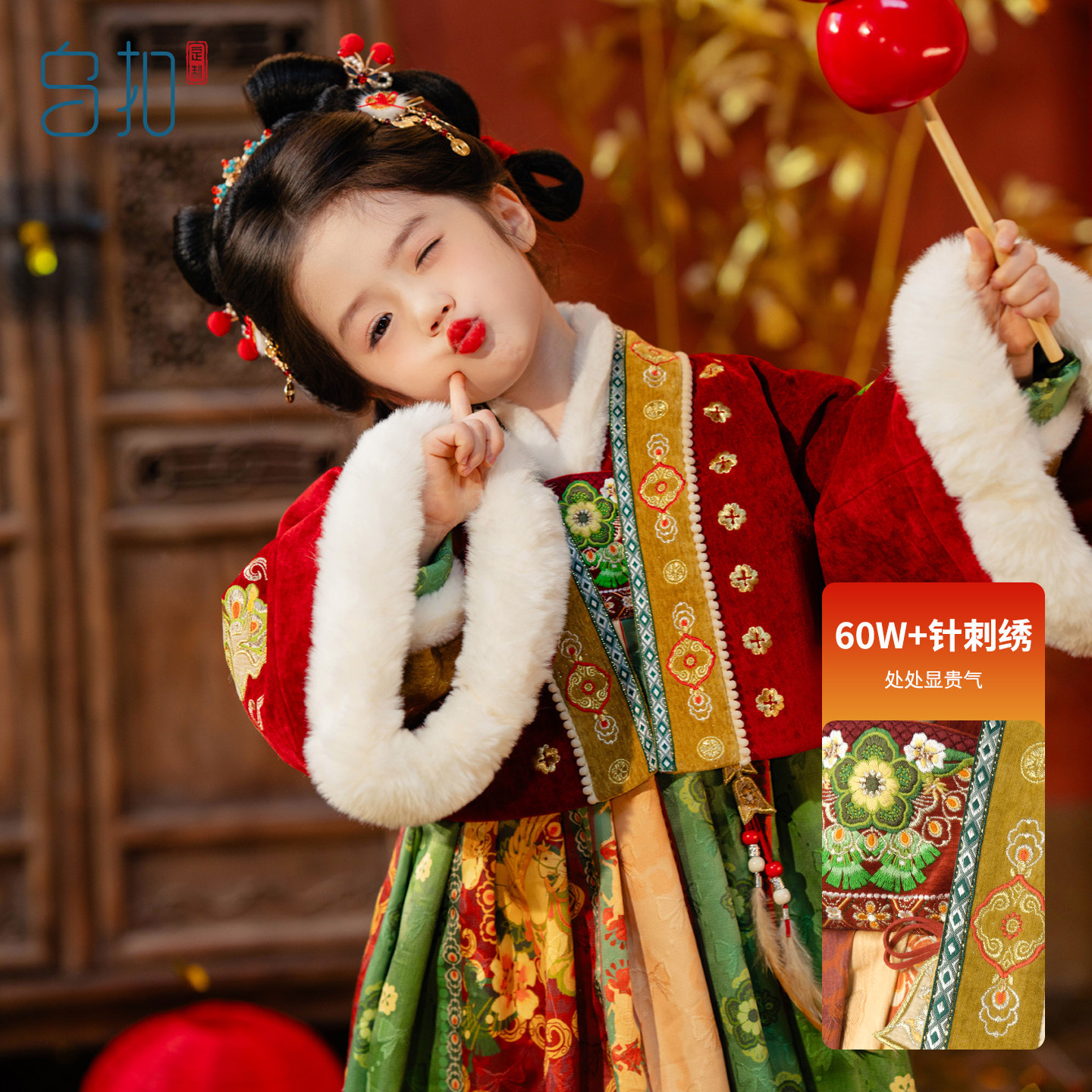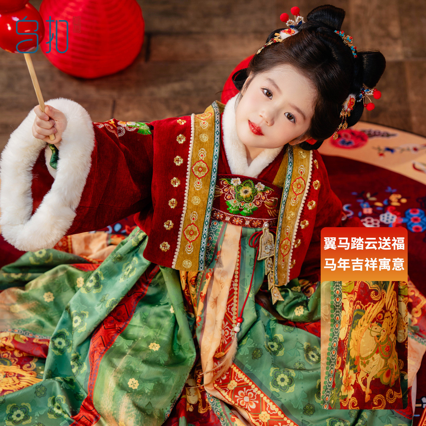 乌扣.以梦为马 女童汉服冬款拜年服儿童中国风冬季保暖襦裙套装