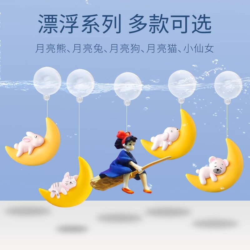 鱼缸造景创意悬浮小魔女摆件全套水族箱饰品漂浮小仙女套装月亮猫