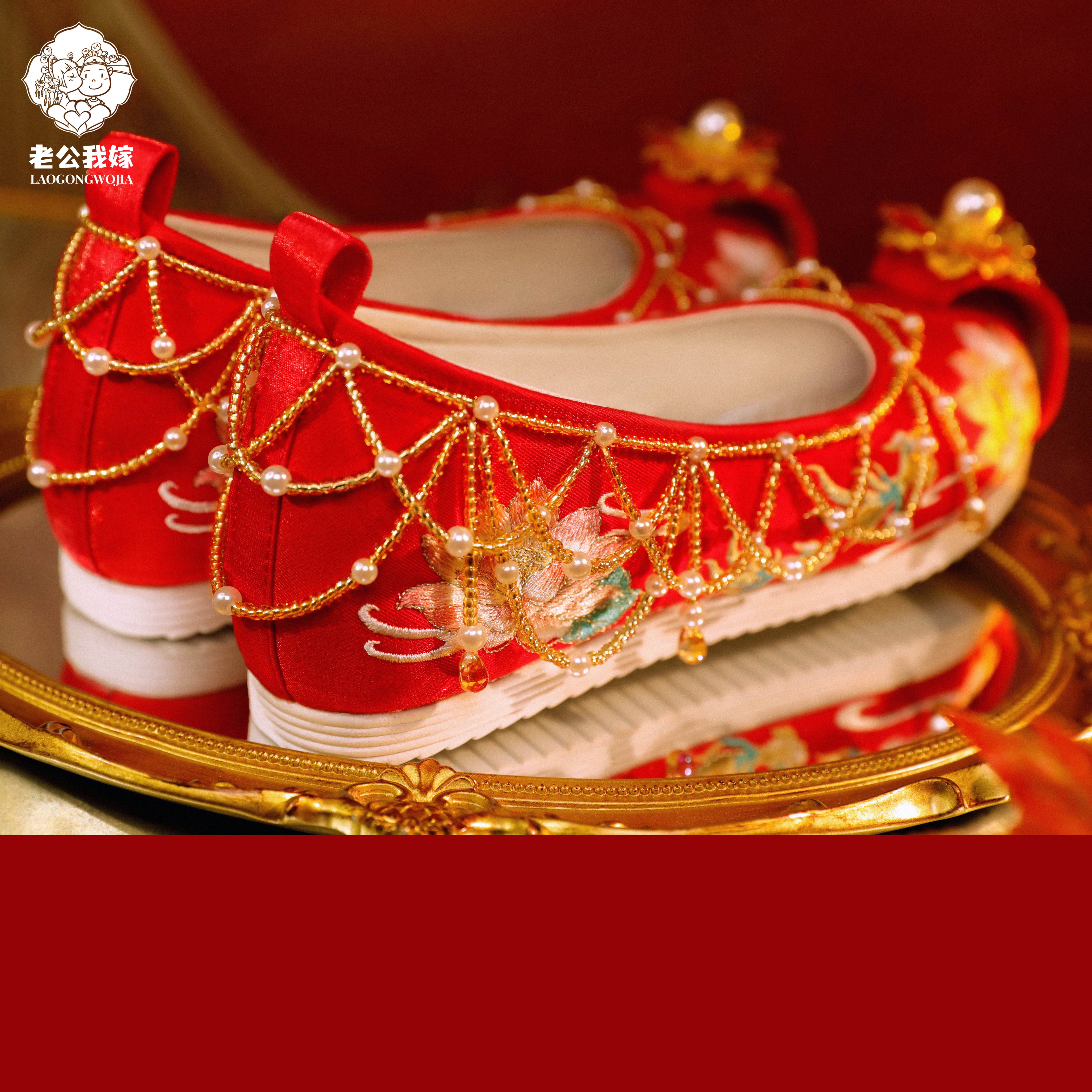 繁花似锦 中式秀禾鞋圆头内增高珠串流苏定制婚鞋原创手工婚鞋