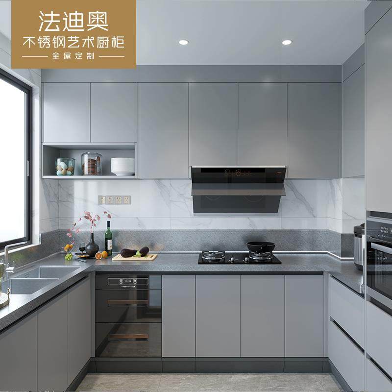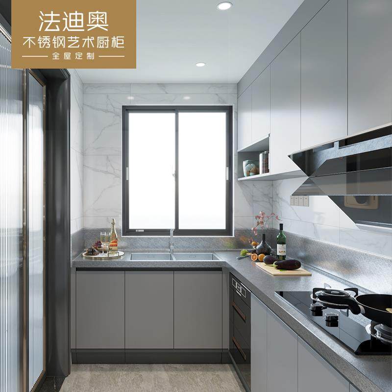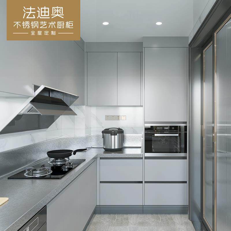 法迪奥304不锈钢橱柜整体定制不锈钢台面厨房橱柜开放式别墅设计