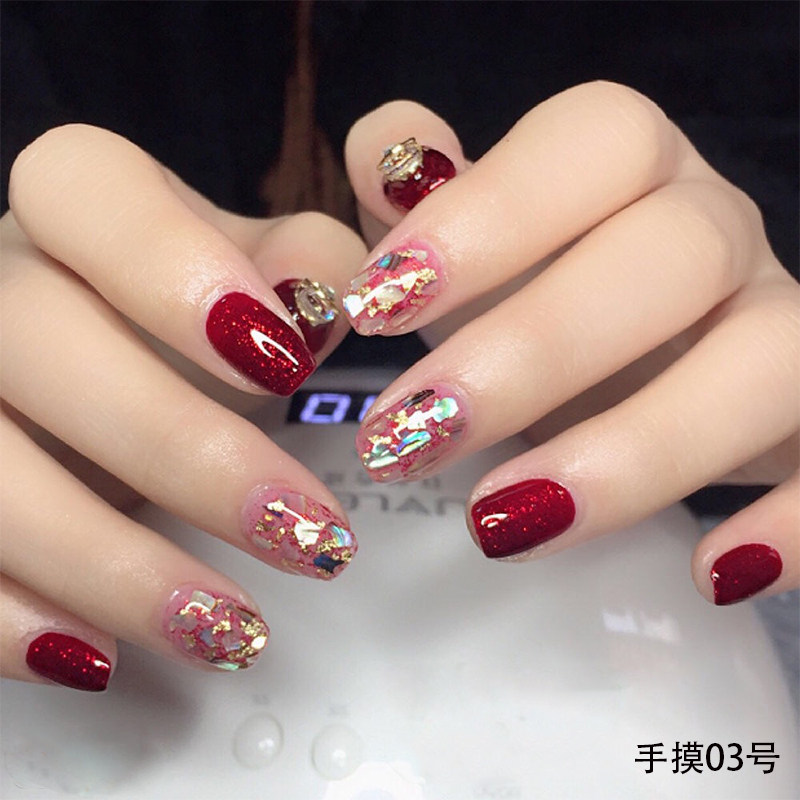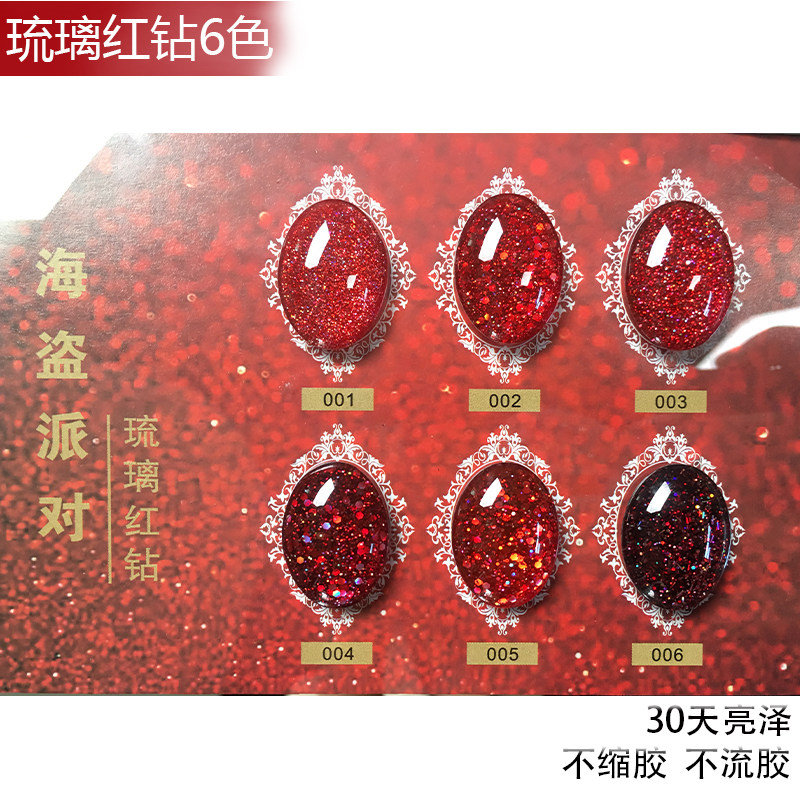 2026年新款甲油胶酒红钻色爆闪大亮片车厘子海盗套装光疗美甲店用