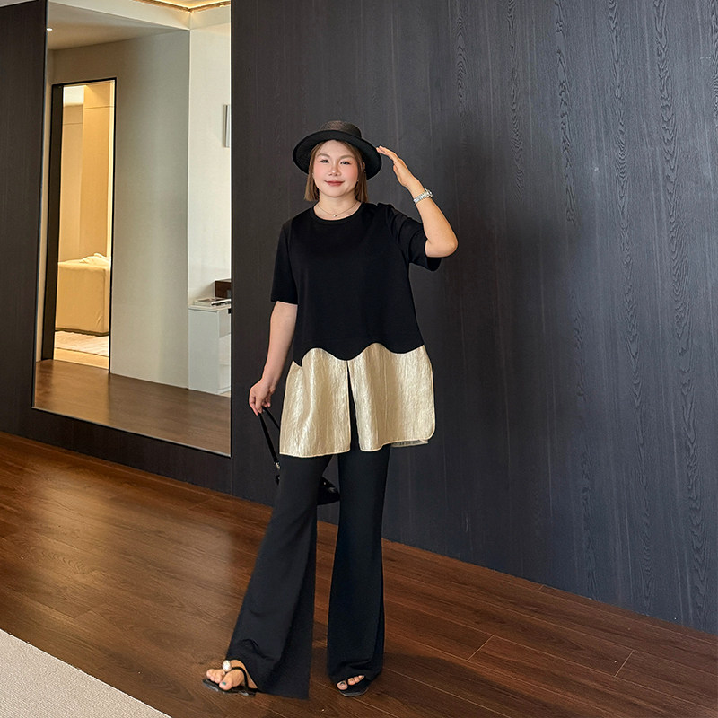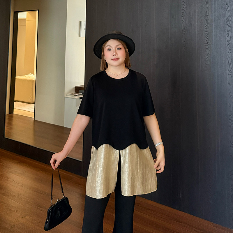 假两件拼接特大码t恤女2026年夏新款胖妹妹mm宽松显瘦短袖上衣