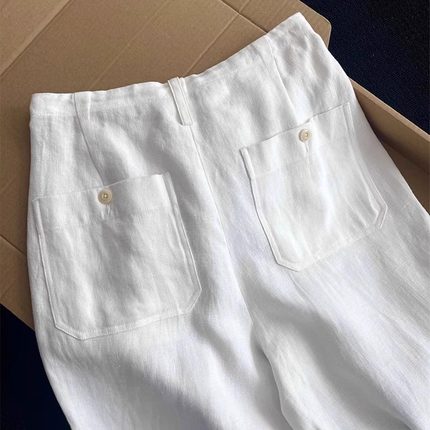 掌柜自留推!老钱风抗皱白色亚麻裤女2025新款舒适透气松弛感裤子