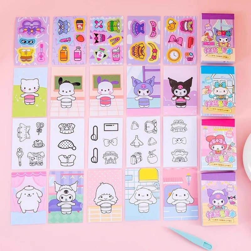 库洛米换装豆豆本贴纸口袋本可爱卡通迷你画画二合一新款女孩儿童手工diy安静书玩具创意涂色本小学生粘贴画