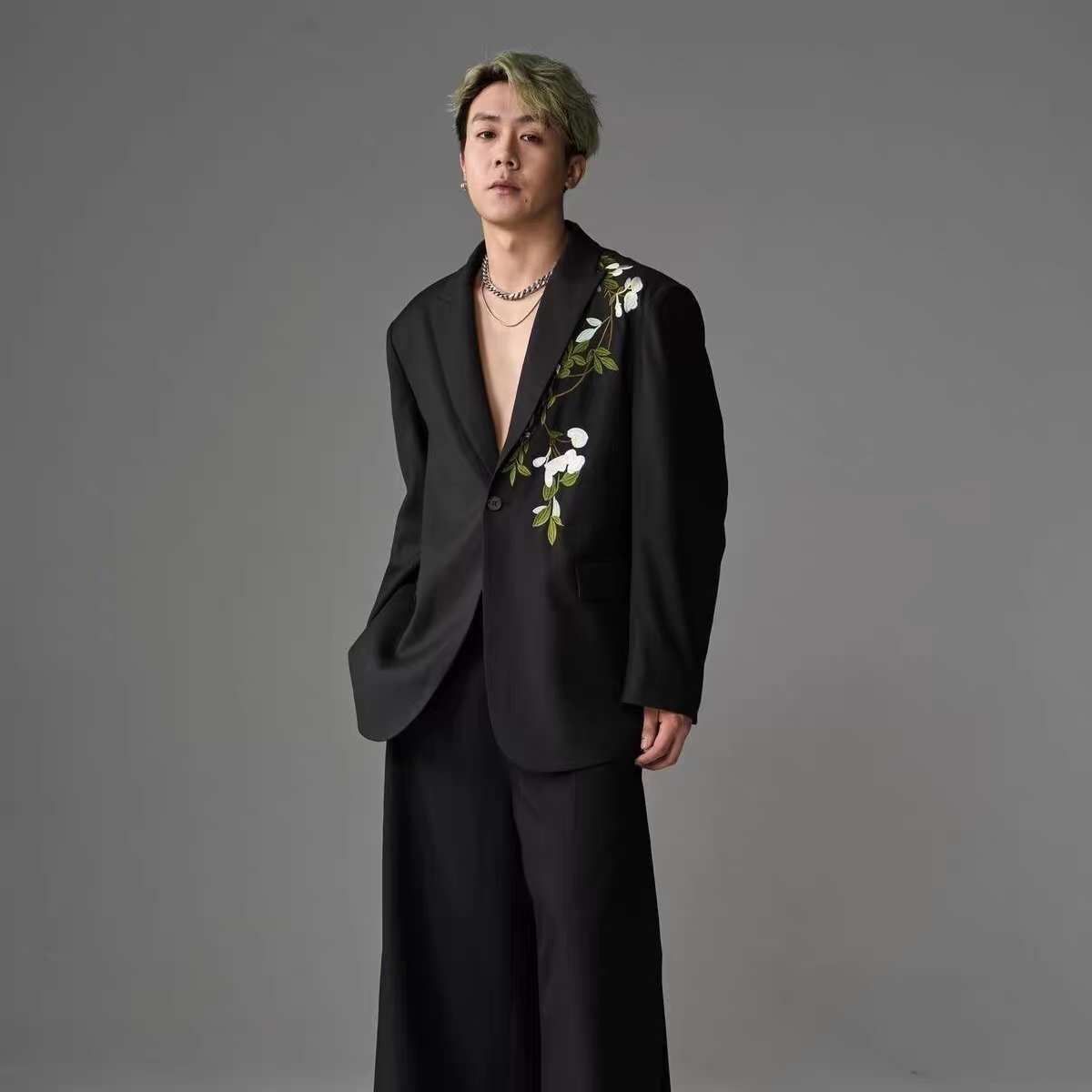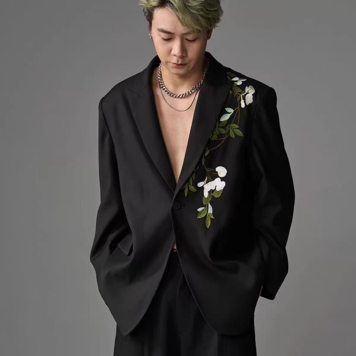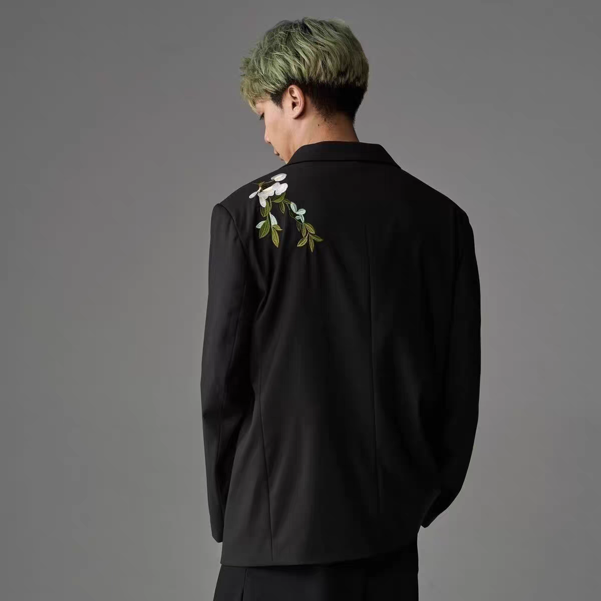 男士韩版修身垫肩西服新中式新郎结婚订婚礼服青少年西装刺绣外套