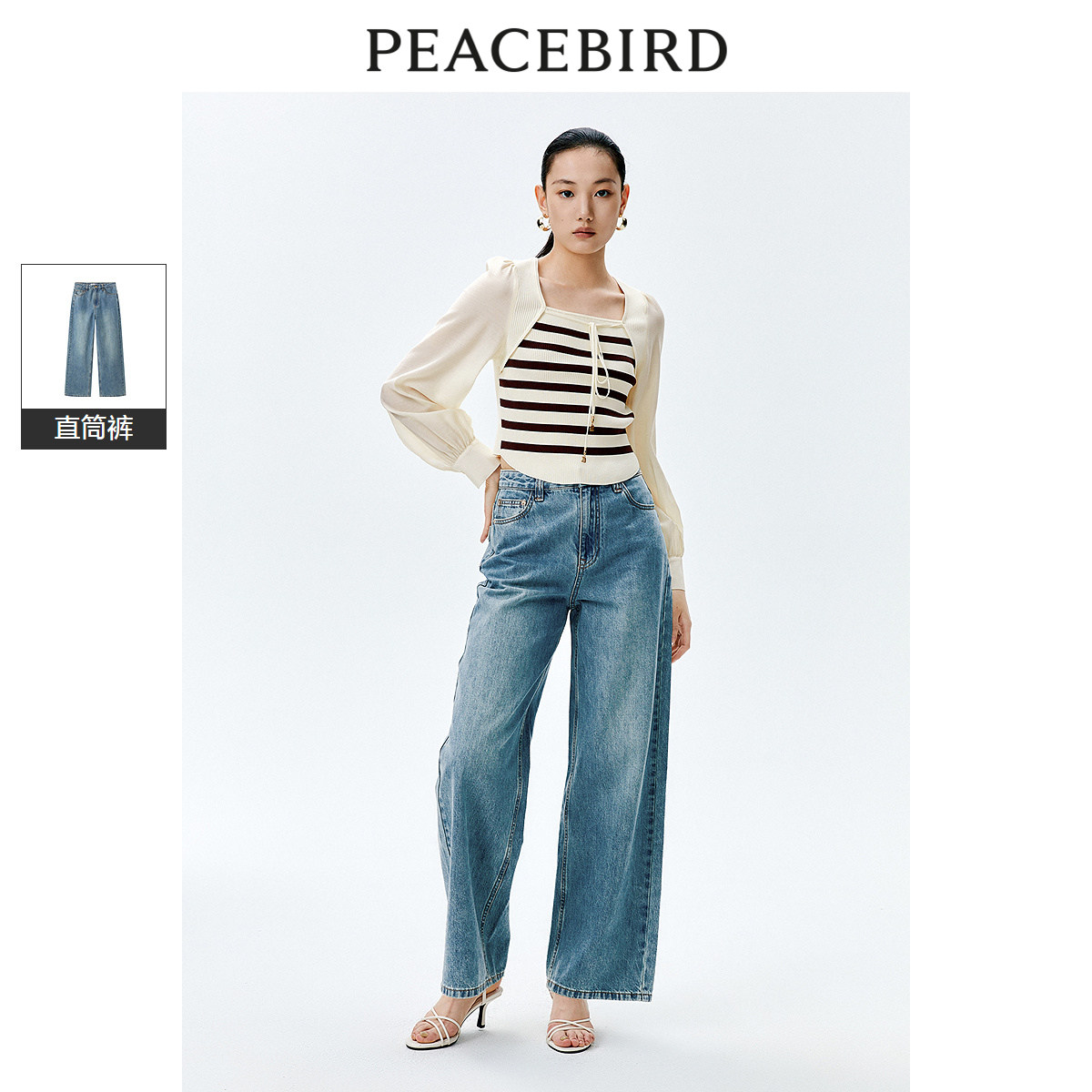 【商场同款】太平鸟女装年春季新款阔型牛仔裤A1HAE1522