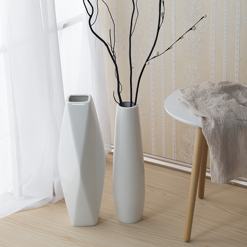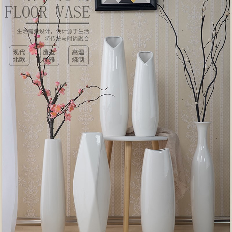 40cm陶瓷花瓶50cm落地插花器 白色大号摆件 酒店客厅家用装饰