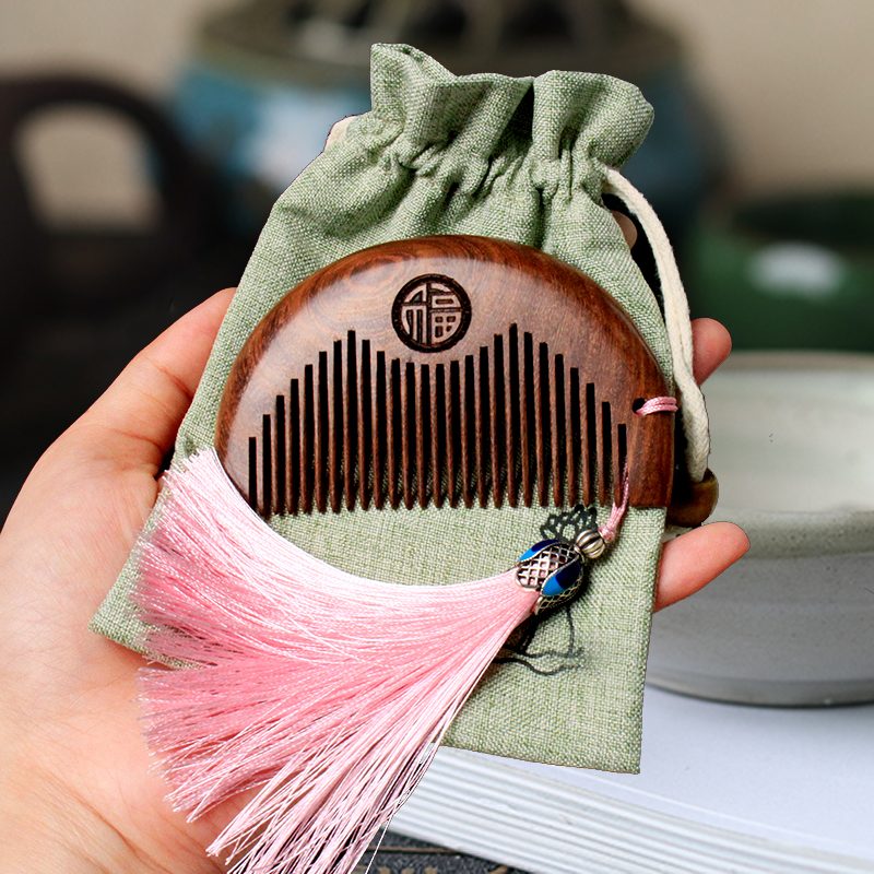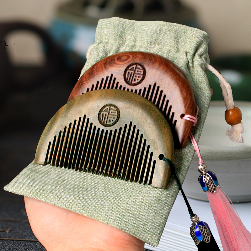 绿檀木梳子养发家用男女士朋友礼物长发经络按摩梳可爱刻字小梳子