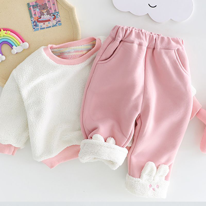 女童冬季套装2025新款洋气宝宝加绒厚卫衣婴儿针织衫毛衣两件套头