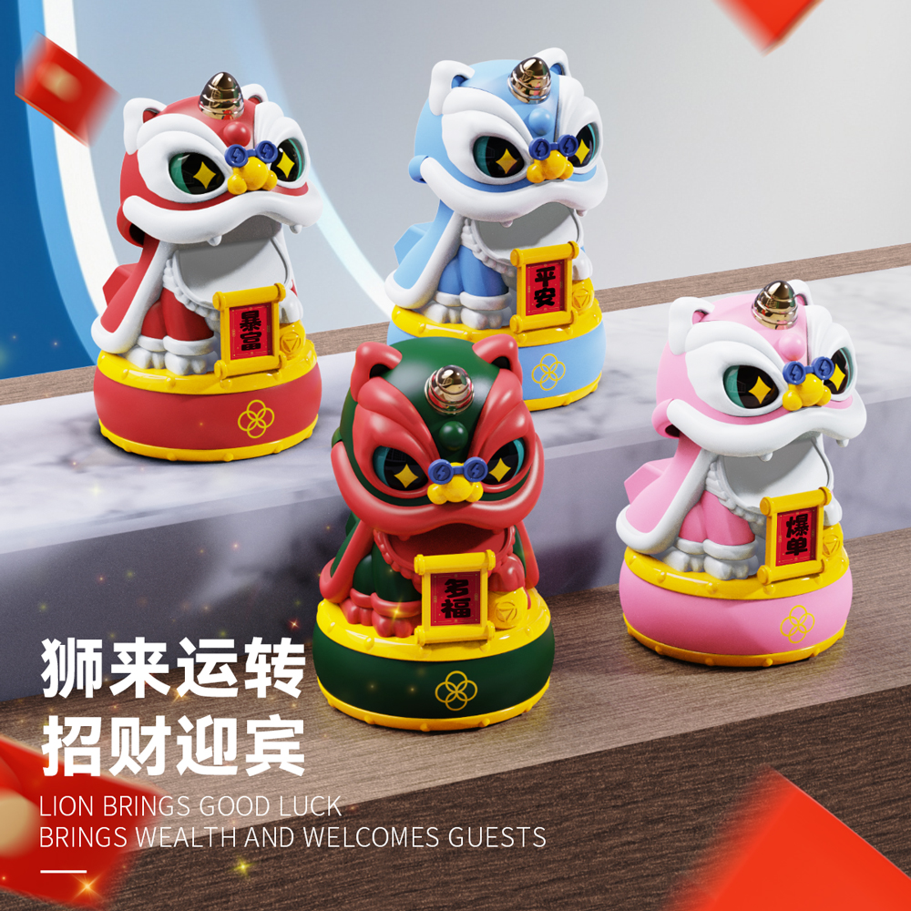 太阳能醒狮摆件中国风吉祥舞狮国潮狮子汽车挂件可爱年会喜庆礼品