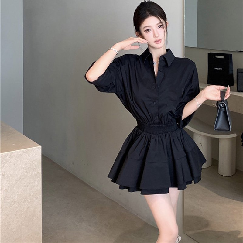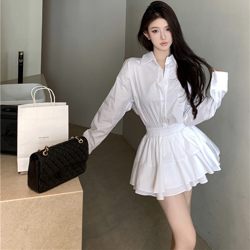 松弛感白色衬衫花苞裙套装女春夏季新款休闲半身裙两件套
