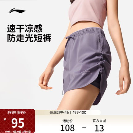 李宁短裤女士夏季假两件内衬运动短裤透气跑步流氓裤速干短裤女