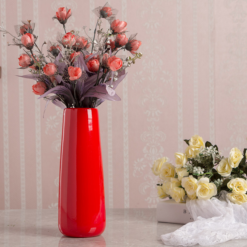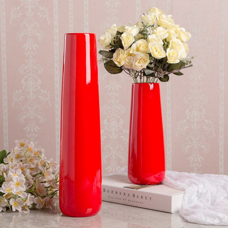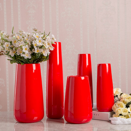 红色陶瓷花瓶三件套风水喜庆结婚