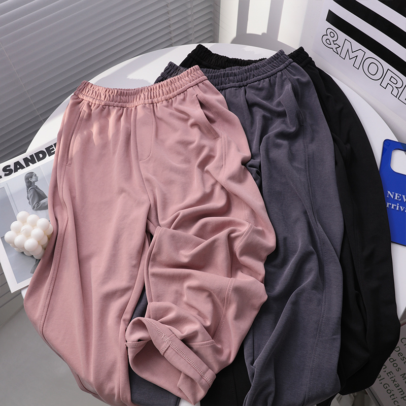 柔软垂感铜氨丝窄版九分裤女秋季薄款松紧高腰显瘦宽松直筒休闲裤