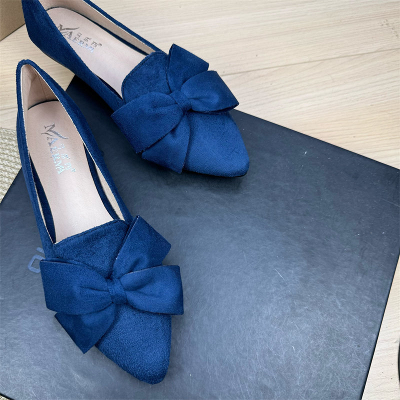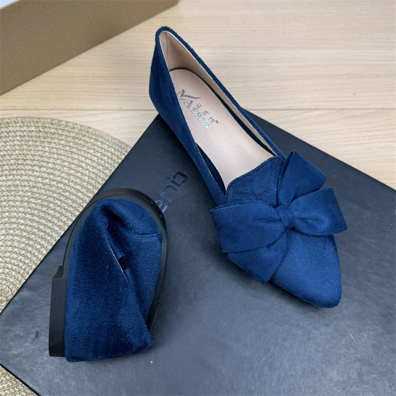 尖头新款单鞋女平底蝴蝶结大码女鞋41一43深口花朵豆豆鞋小工作鞋