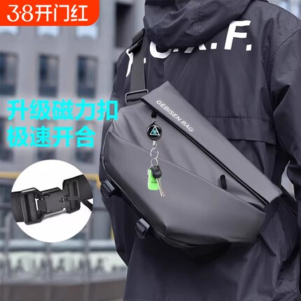 磁吸扣男士斜挎包大容量机能胸包