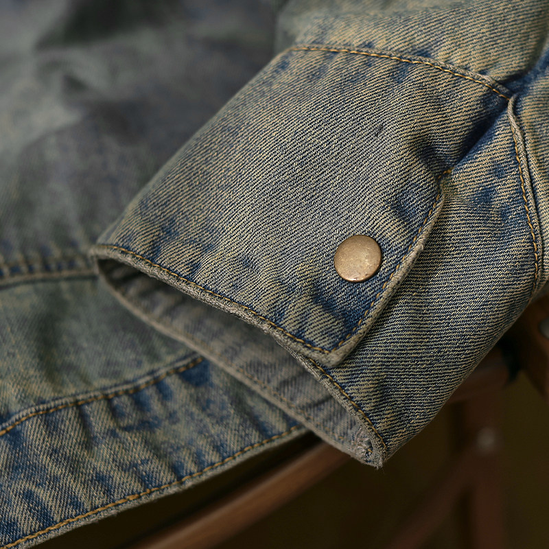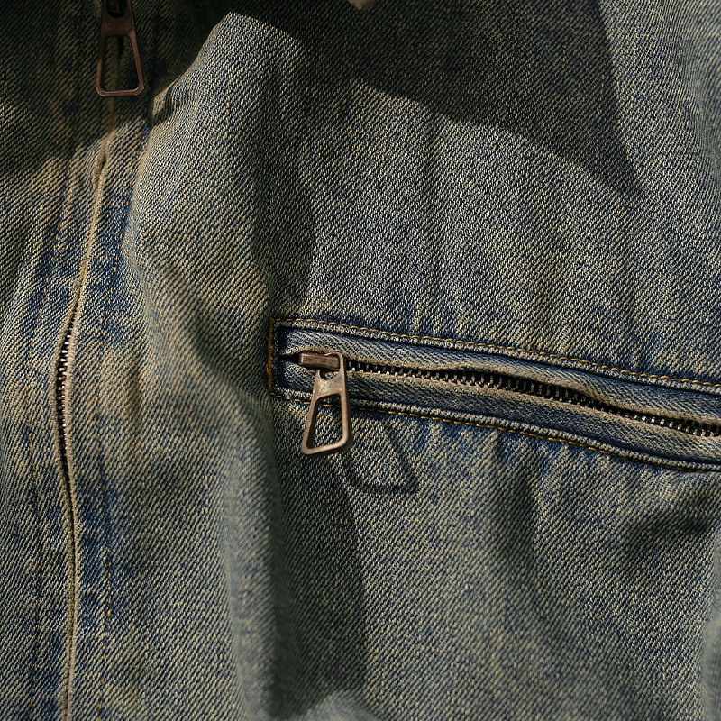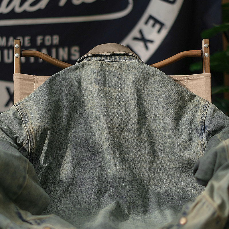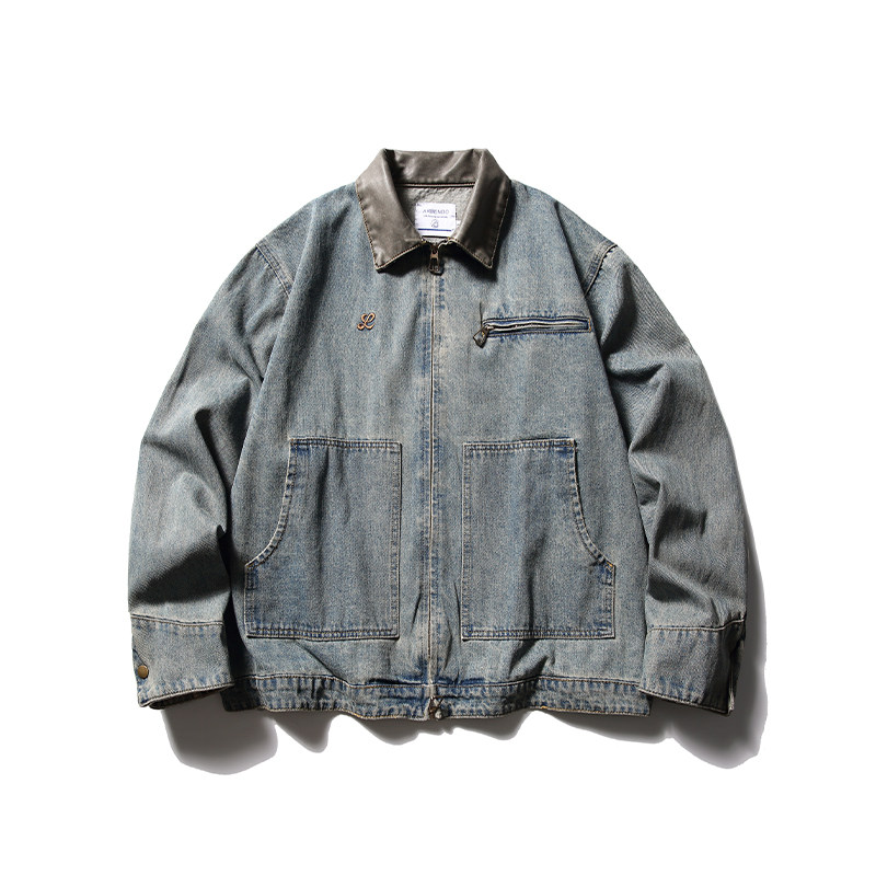 【灰皮领】春秋日系复古底特律牛仔夹克男水洗做旧休闲工装外套潮