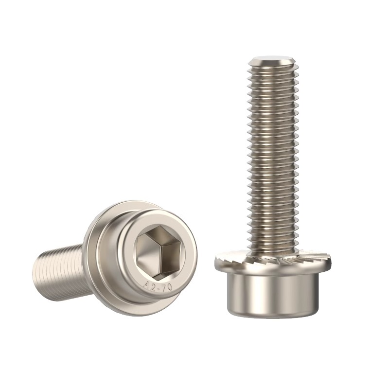 304不锈钢法兰内六角螺丝圆柱头带垫螺钉螺丝钉【M5M6M8M10M12】