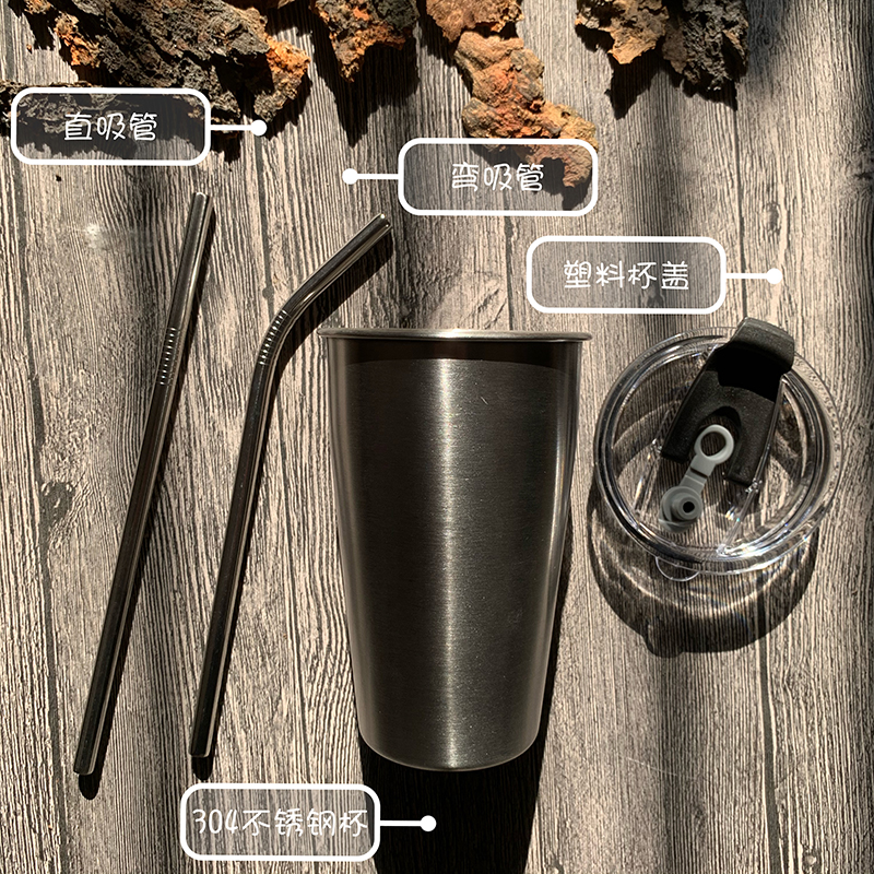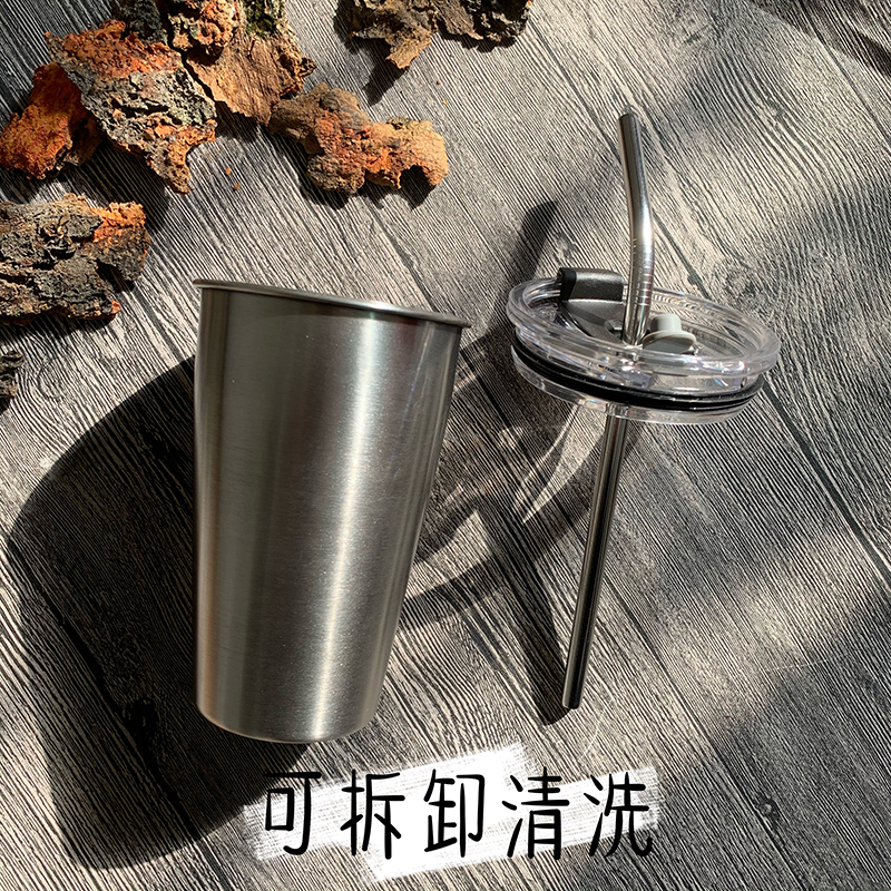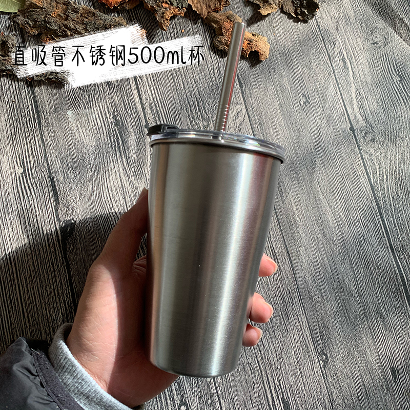 创意304不锈钢吸管咖啡杯单层防摔车载办公工业风杯子果汁水杯子