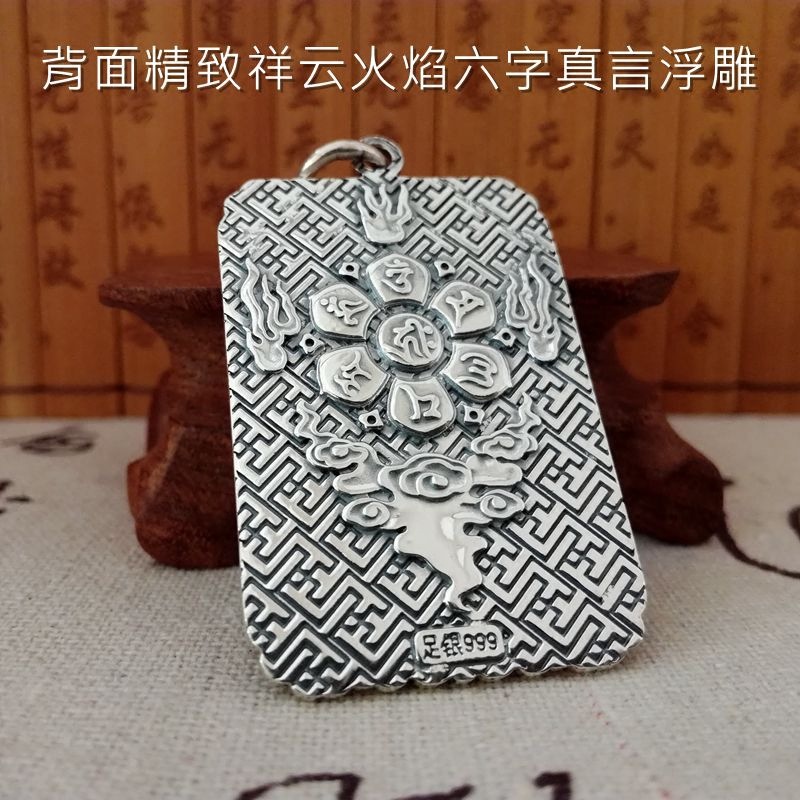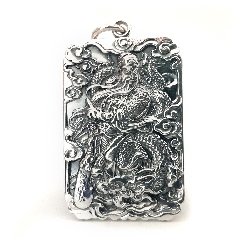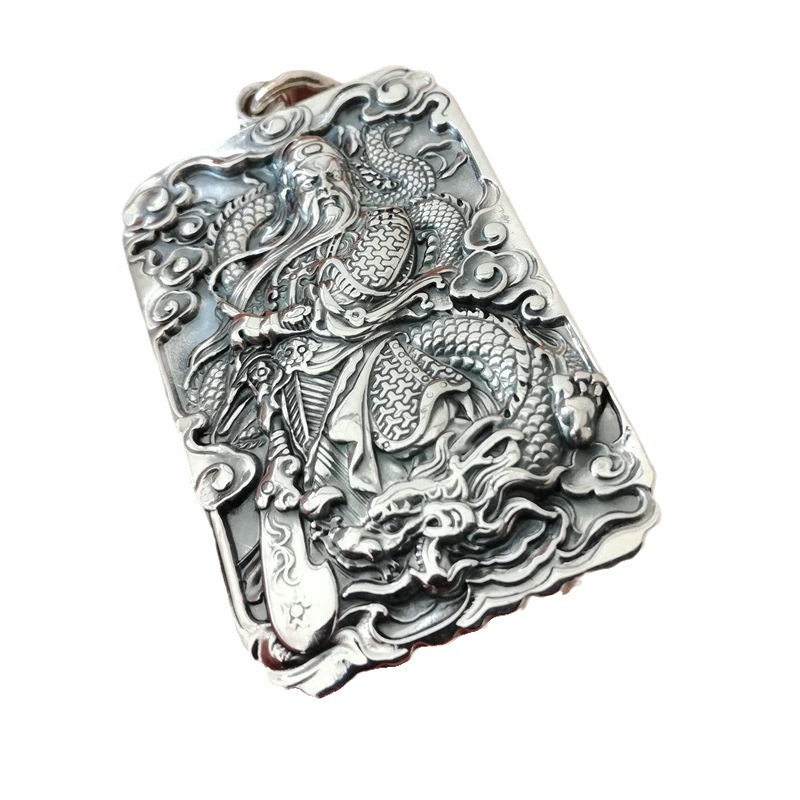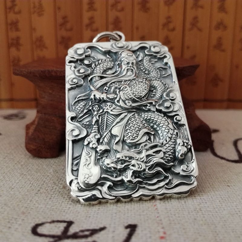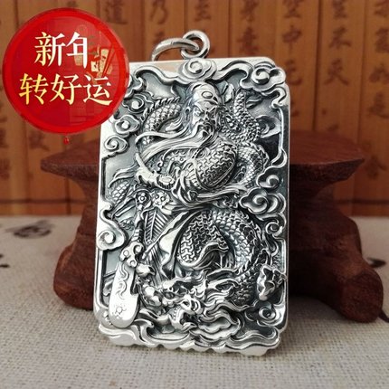【好运】999纯银武财神关公吊坠足银霸气男士复古项链护身吊牌