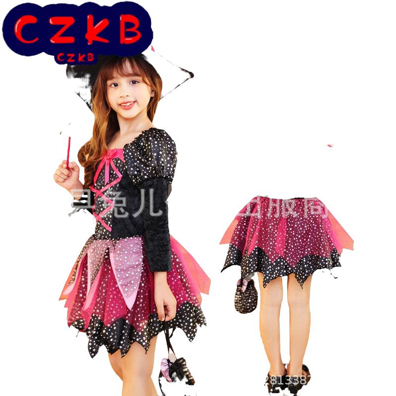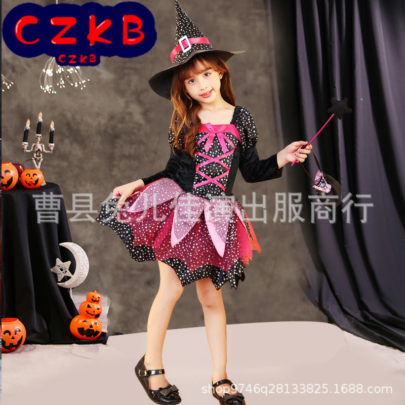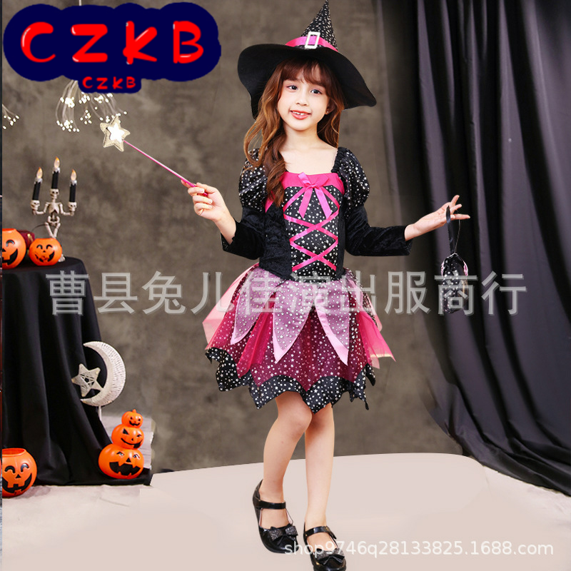 新款万圣节儿童服装巫婆女巫演出服cosplay服装女童巫师公主裙