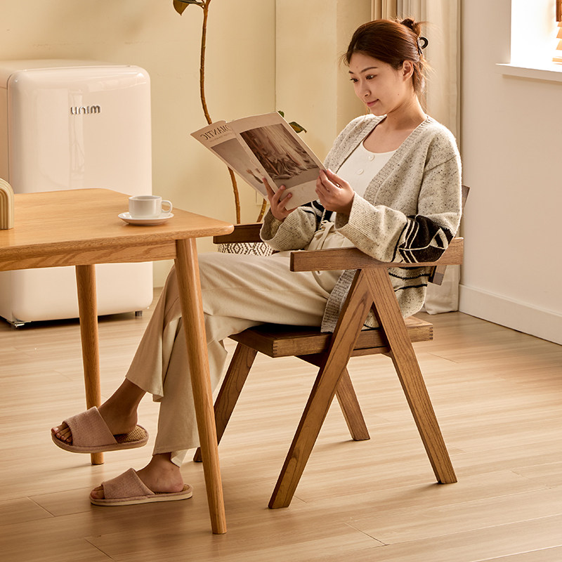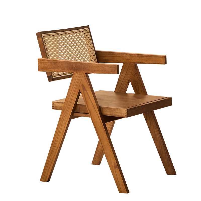 昌迪加尔白蜡木北欧中古风法式设计师休闲民宿网红藤编椅家用餐椅