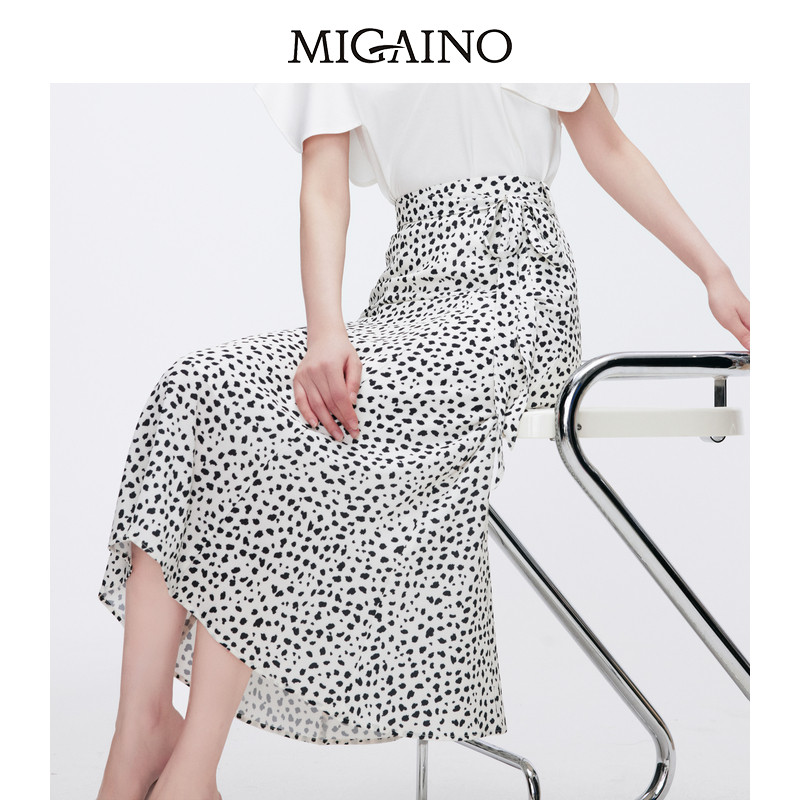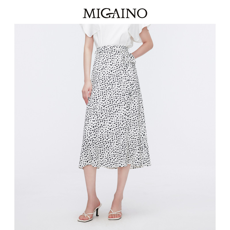 Migaino曼娅奴女装夏季新款法式优雅波点半身裙MO22EB088