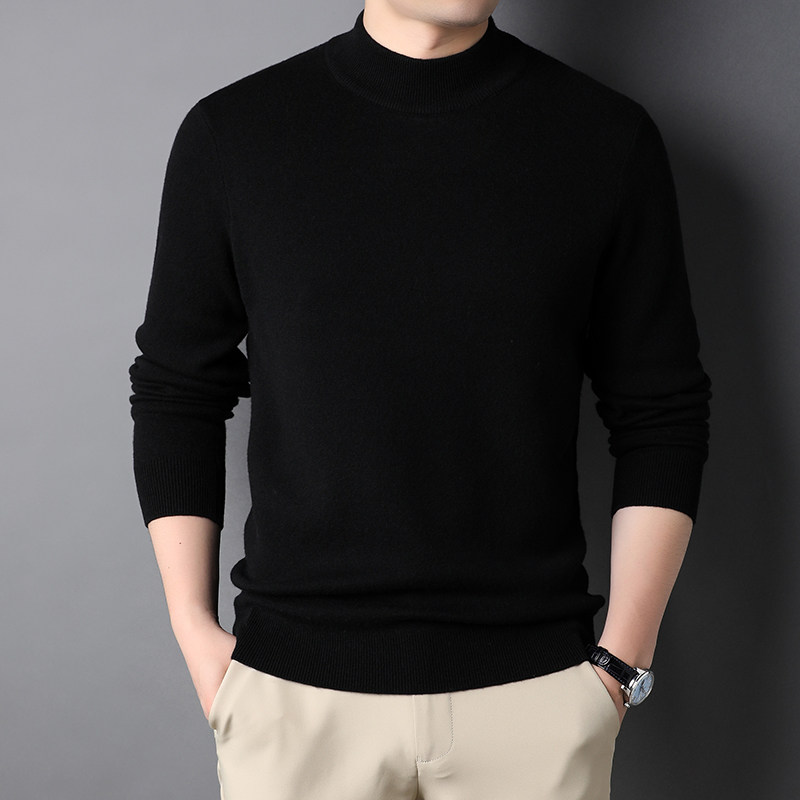 鄂尔多斯市100%纯色毛衫男士半高领加厚纯色毛衣冬季打底保暖套头