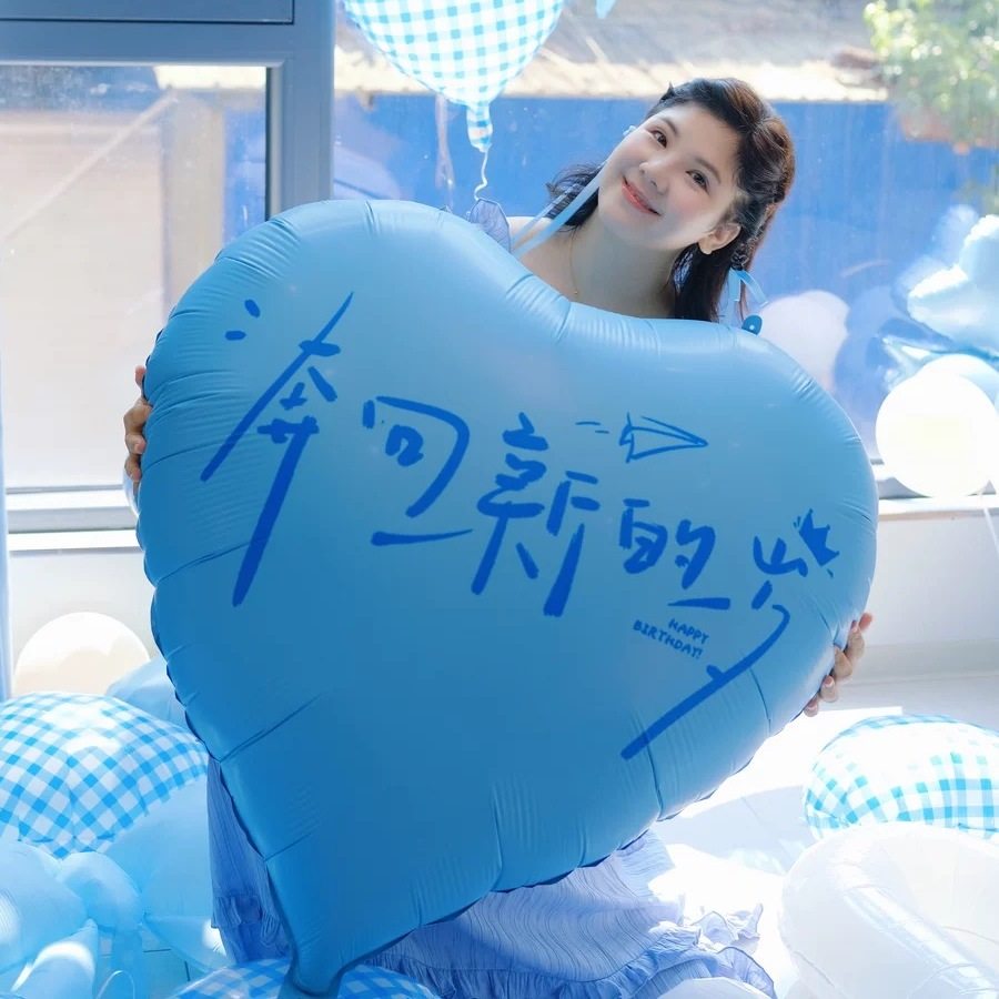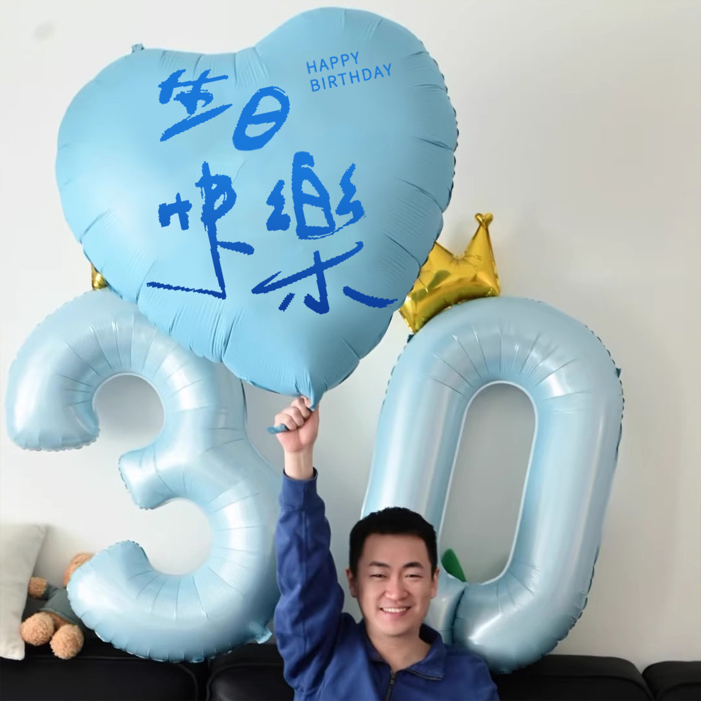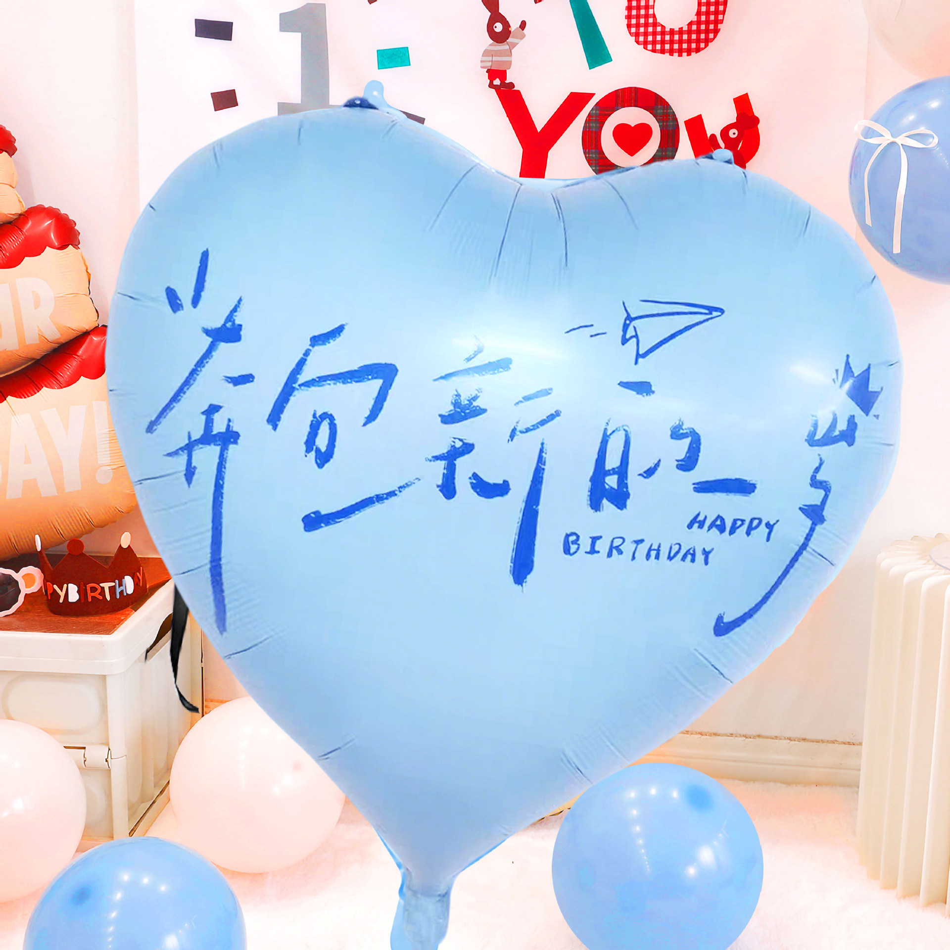 生日快乐气球party布置场景装饰男孩18岁拍照道具蓝色爱心40寸30