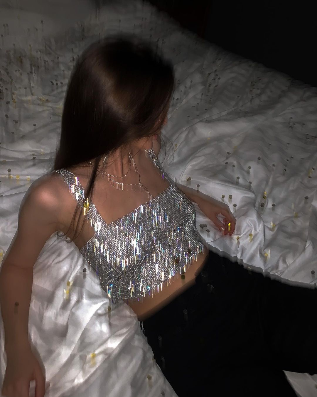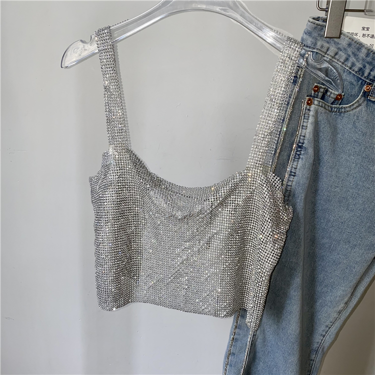 ins水钻亮片性感小吊带露背心blingbling烫钻夜店短款抹胸上衣女