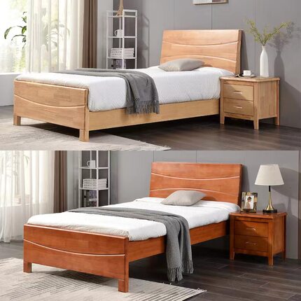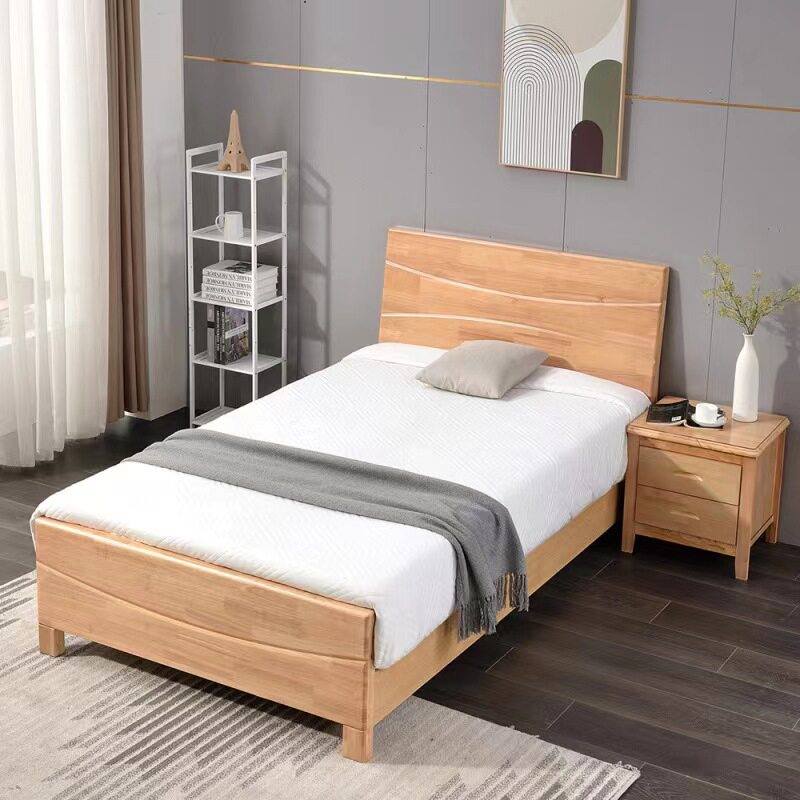 简约现代橡木单人双人床家用公寓床