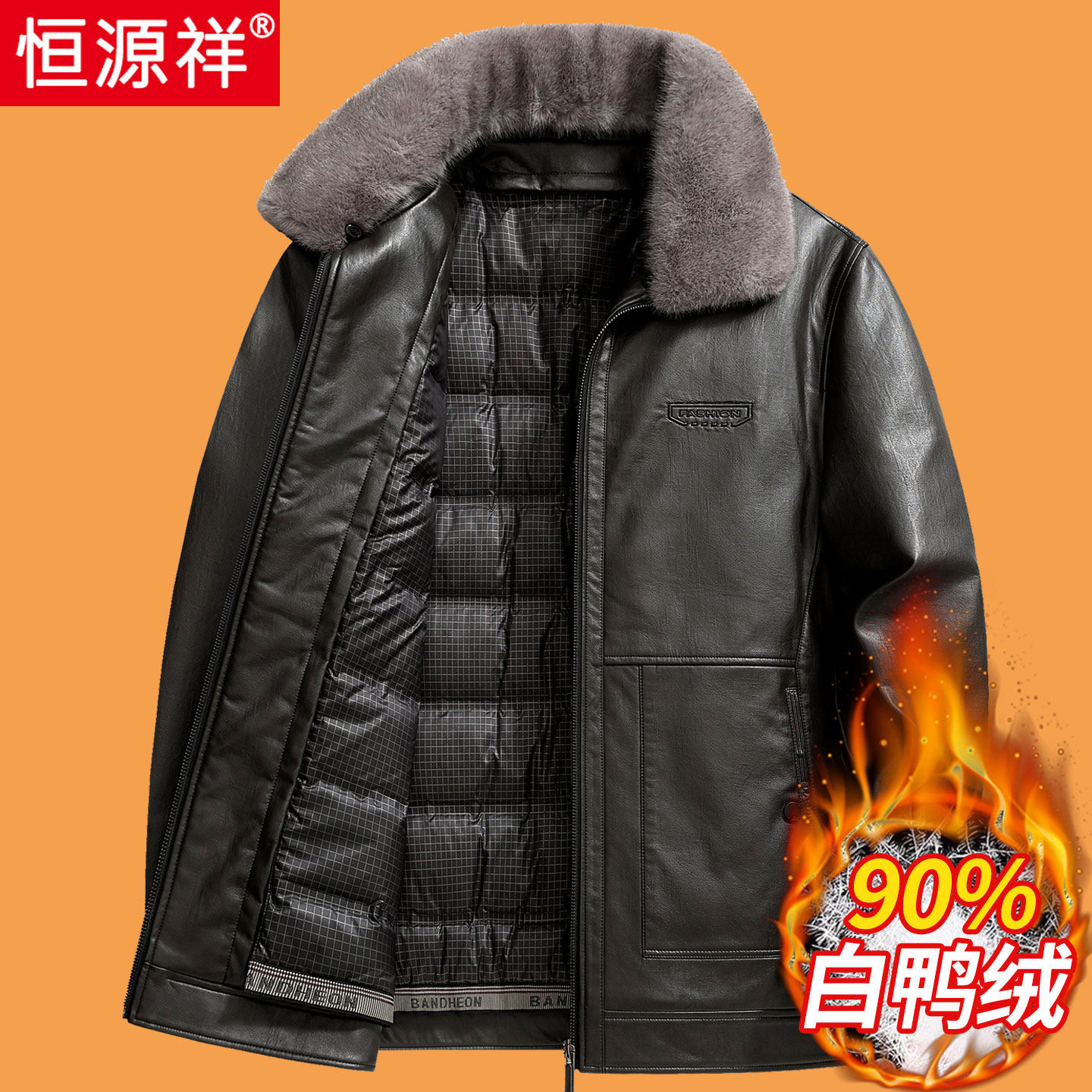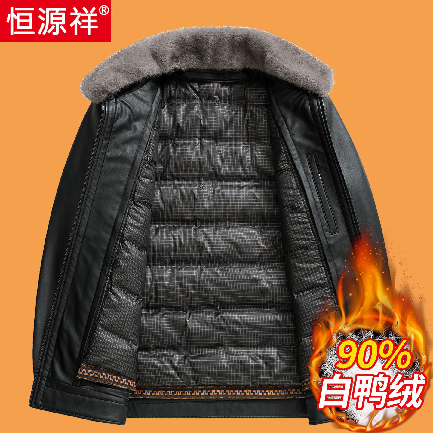 恒源祥中老年羽绒皮衣男士冬季加厚可脱卸内胆羽绒服爸爸冬装外套
