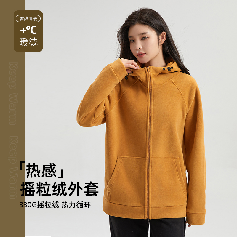 连帽抓绒上衣男女同款秋冬季新款户外运动保暖摇粒绒百搭情侣外套