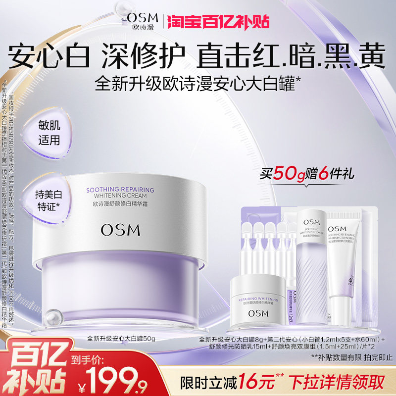 【百补】欧诗漫安心大白罐美白舒缓美白特证版面霜敏感肌秋冬奶罐