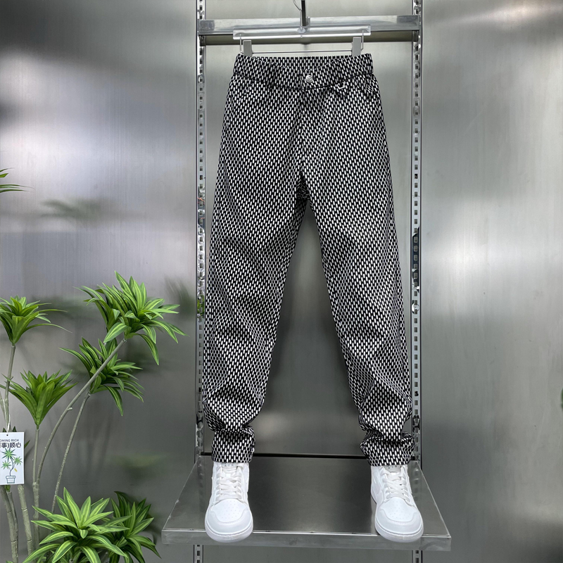 【潮流轻奢】2025春季新款男士休闲长裤子男潮流百搭小脚裤格子裤