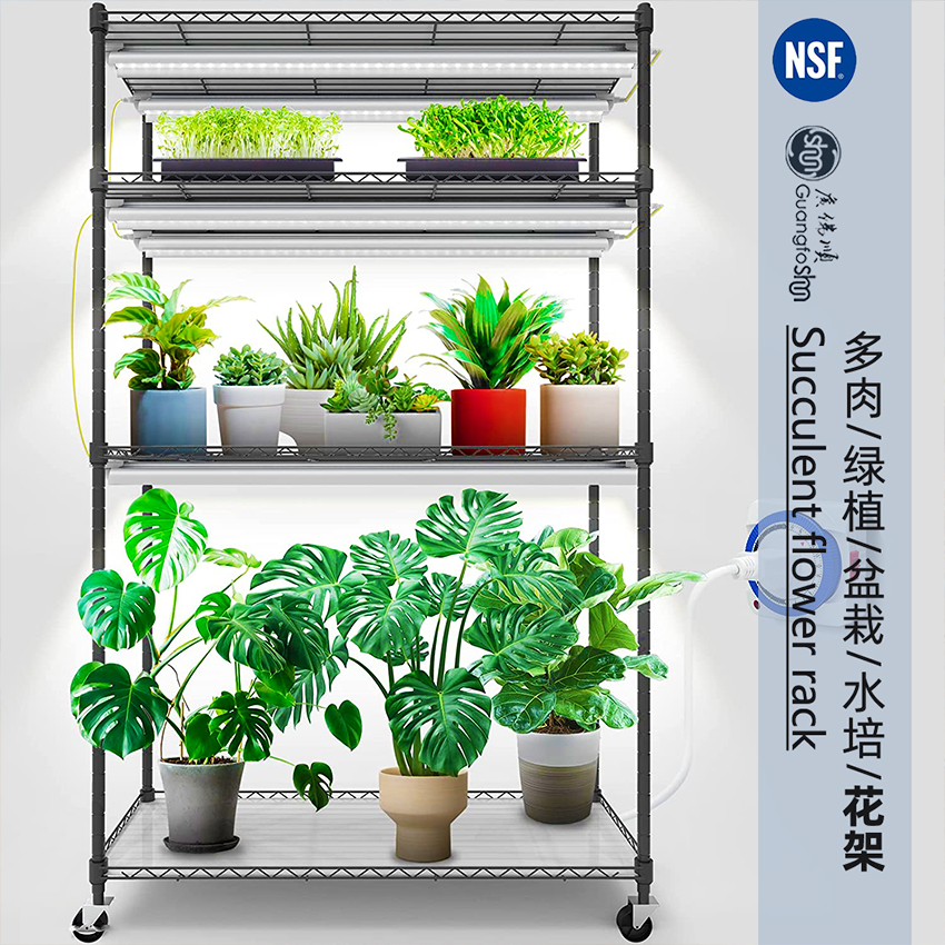 新品多肉养植架子室内阳台盆栽生长灯绿植收纳整理花架灯白色落地