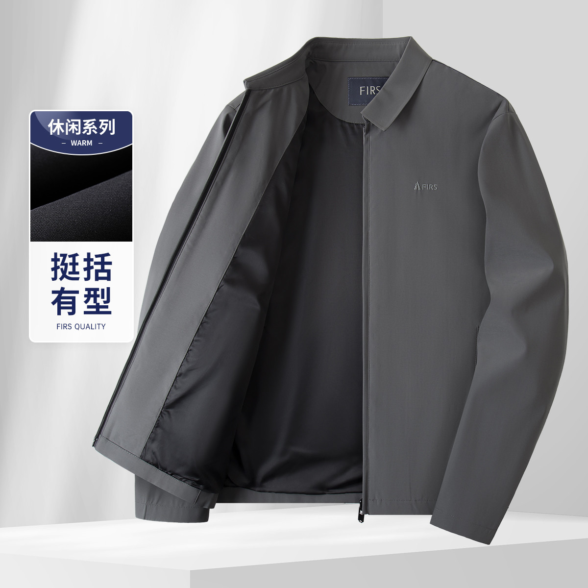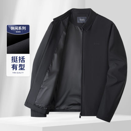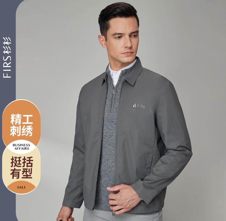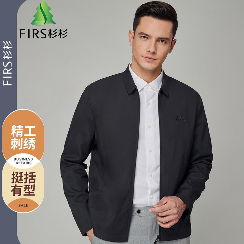 杉杉春秋新款商务行政风休闲翻领LOGO刺绣短款夹克外套男士爸爸装