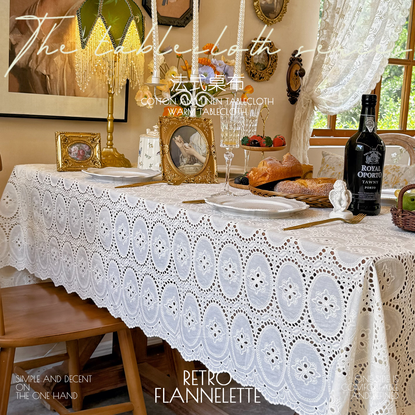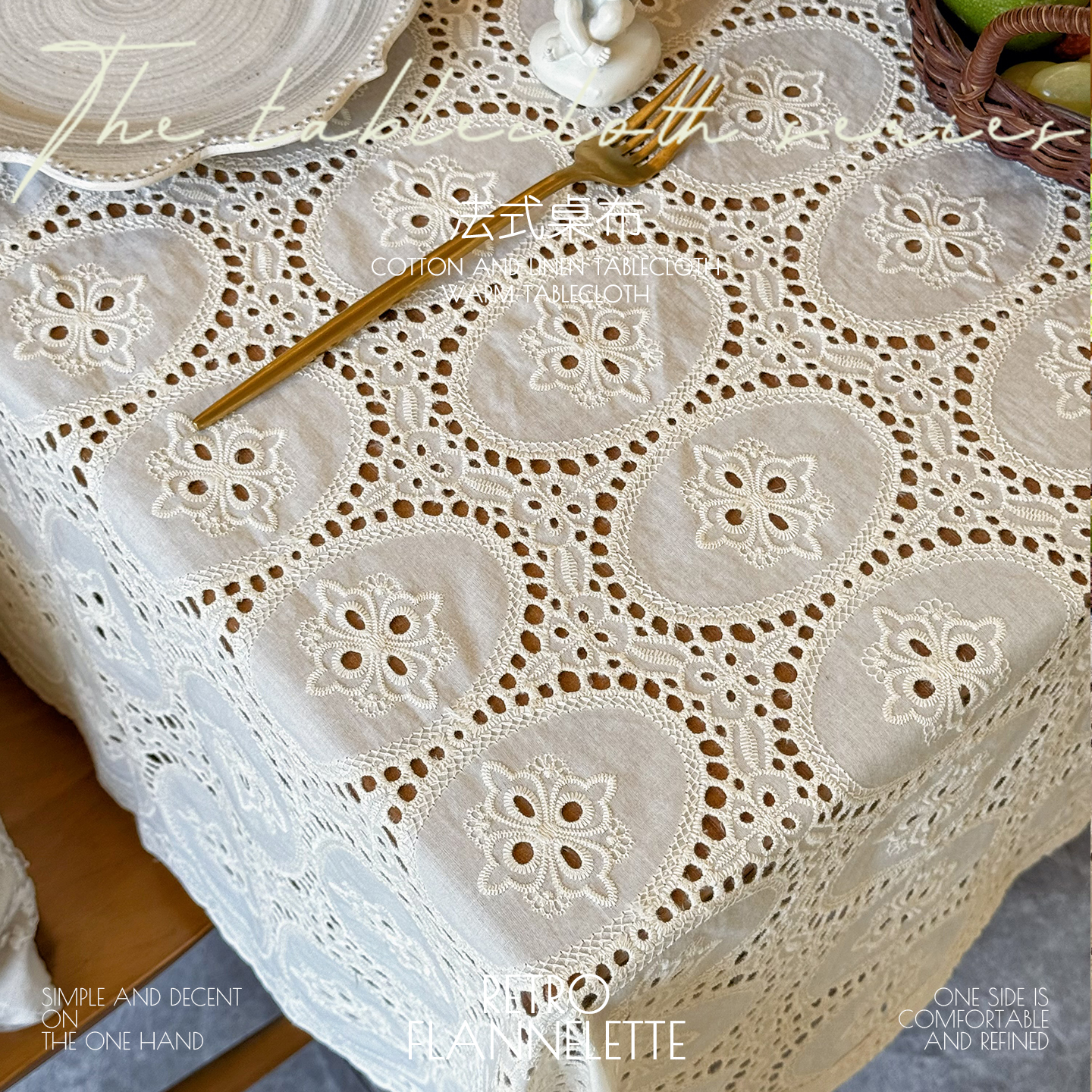 法式复古米色桌布镂空刺绣高级感长方形餐桌布宫廷风美式盖巾田园