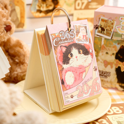 猫咪日历2026年新款萌宠治愈解压台历暇日漫记创意桌面摆件手撕翻页365天倒计时打卡月历儿童圣诞节生日礼物