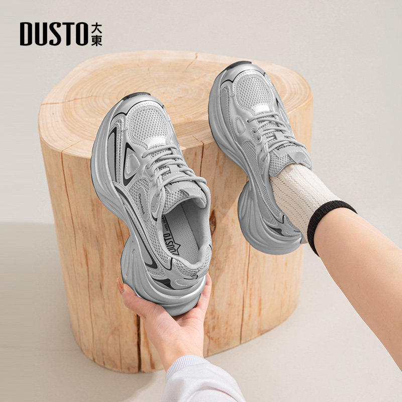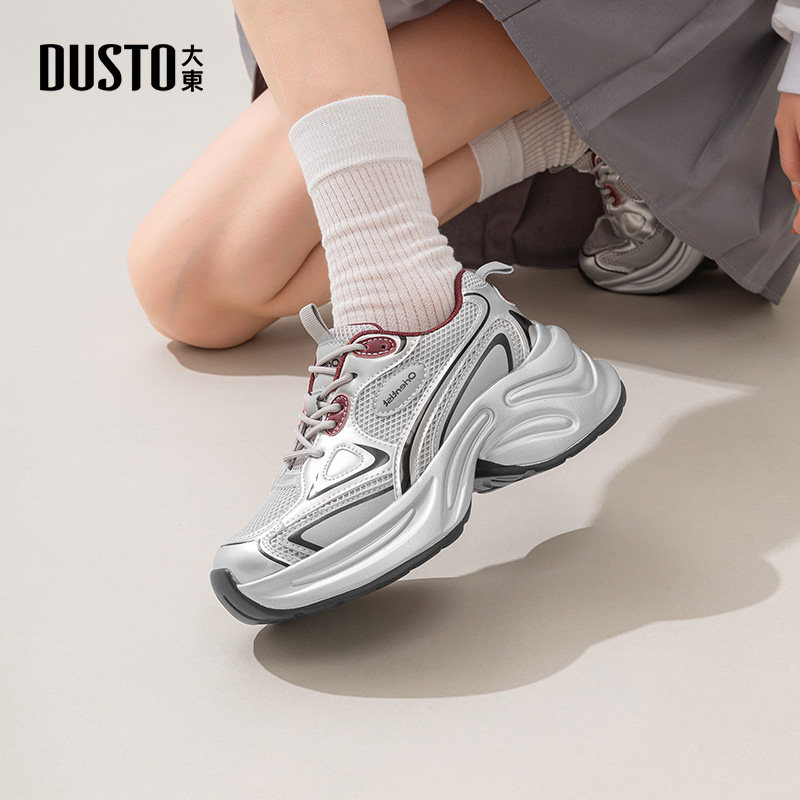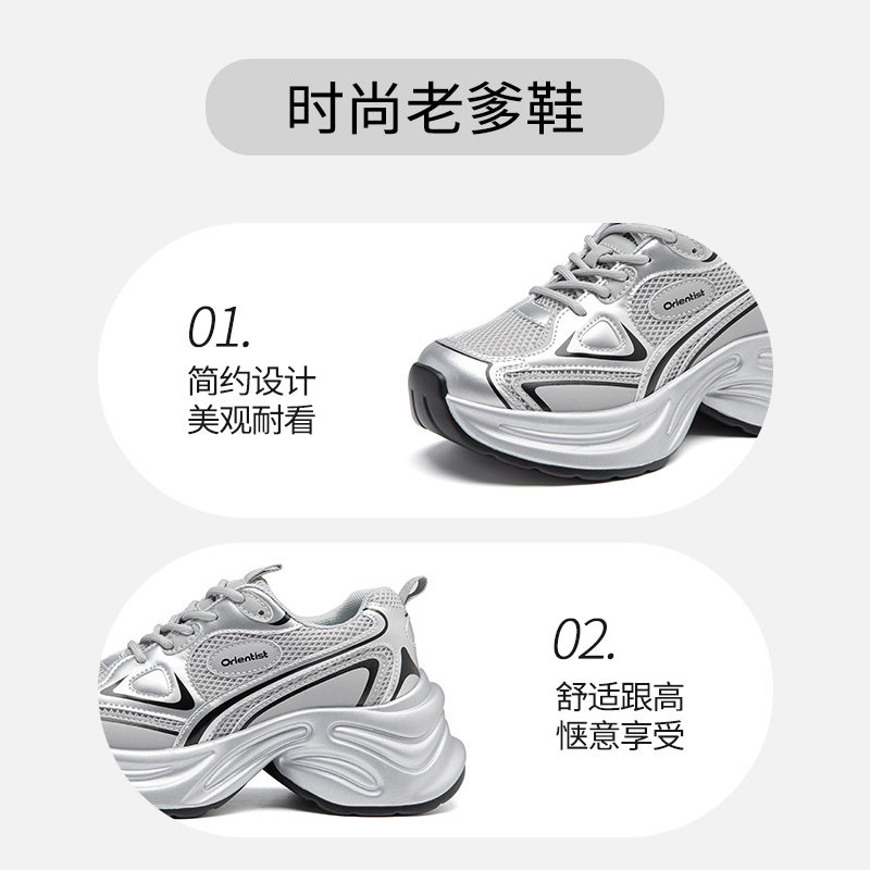 大东老爹鞋2025秋季新款时尚休闲鞋平底高跟增高系带运动鞋女单鞋