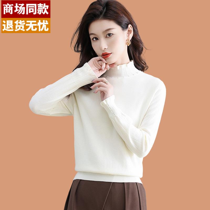 木耳领毛衣女士秋冬2024新款时尚洋气爆款钉珠白色内搭打底羊毛衫