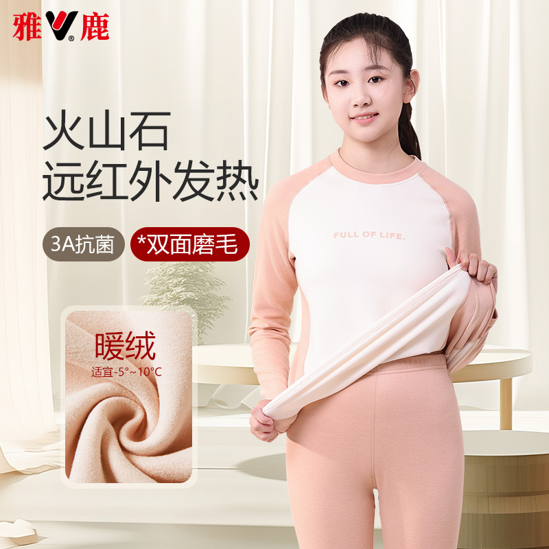 雅鹿少女秋衣秋裤女初中高中学生德绒保暖内衣套装加厚抗菌棉毛衫